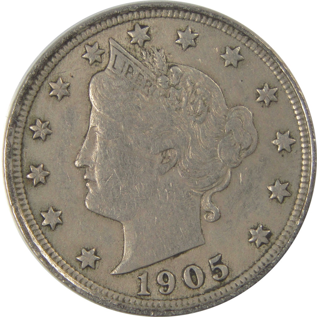 A genuine 1905 Liberty Head V Nickel Coin, graded and certified EF 45 Details by ANACS. Cleaned