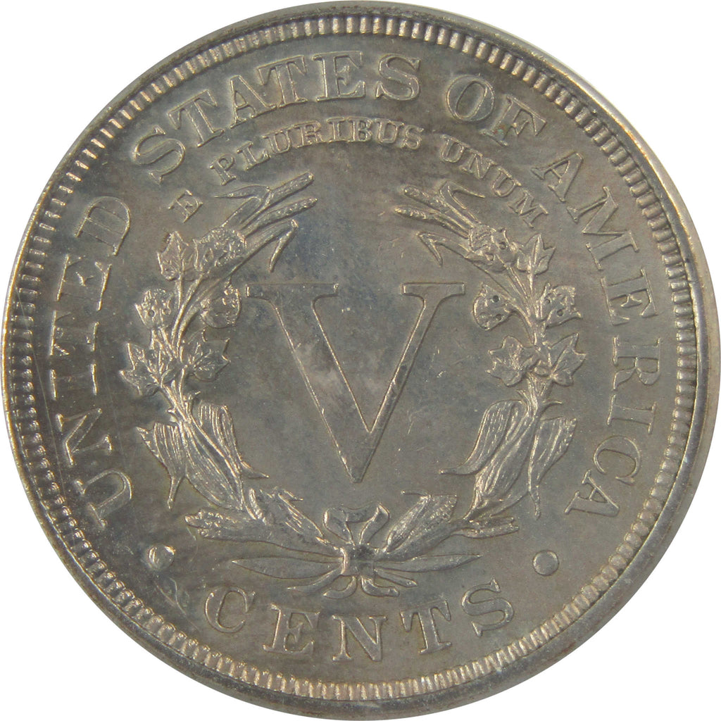 A genuine 1906 Liberty Head V Nickel Coin, graded and certified AU 58 Details by ANACS. Cleaned