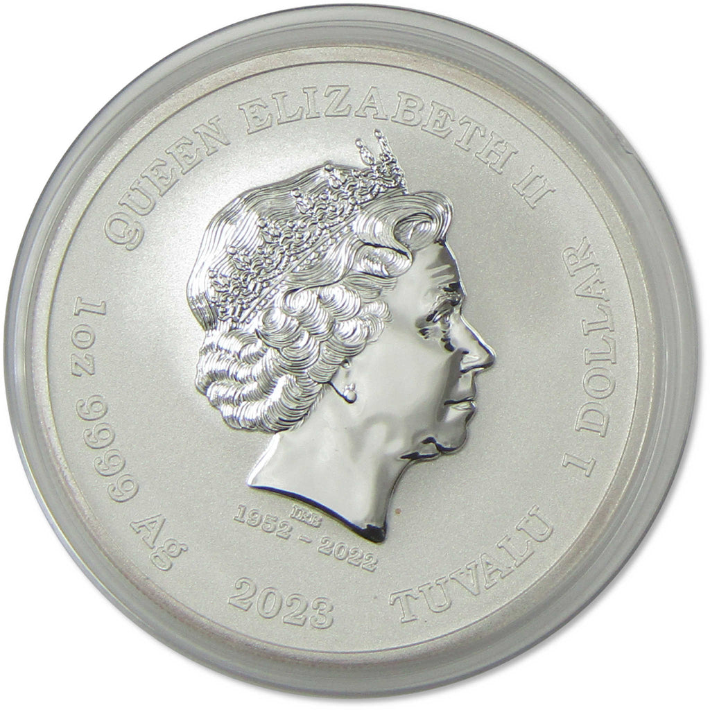 A genuine 2023 Tuvalu 007 James Bond Casino Royale Chip Silver Dollar Bullion Coin, from The Perth Mint, in BU Brilliant Uncirculated Condition. Contains 1 oz 0.9999 Silver