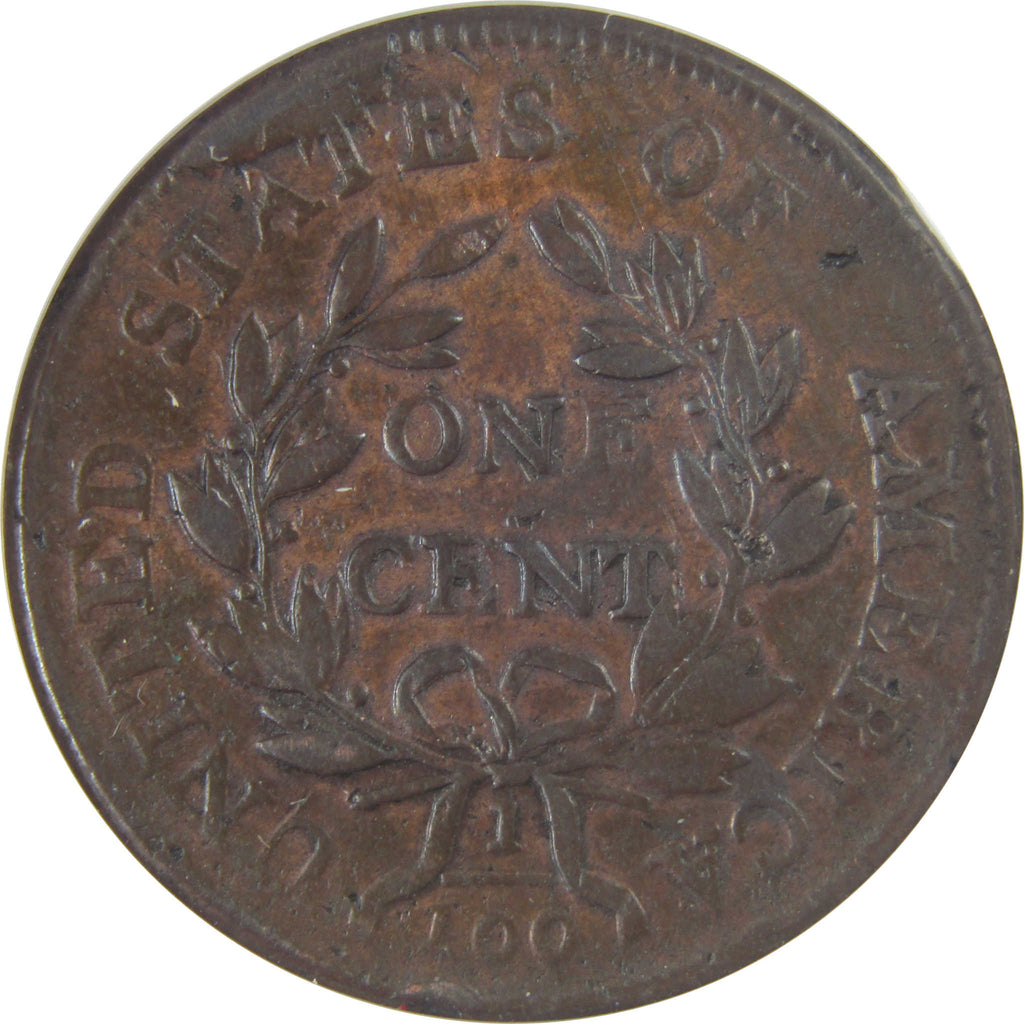 Struck over 200 years ago, this copper Draped Bust large cent is 50% larger than today's cents. Its classic obverse by Robert Scot depicts Liberty with a plunging neckline and flowing hair held by a ribbon. The reverse shows ONE CENT, surrounded by a wreath, UNITED STATES OF AMERICA and the fraction 1/100.
