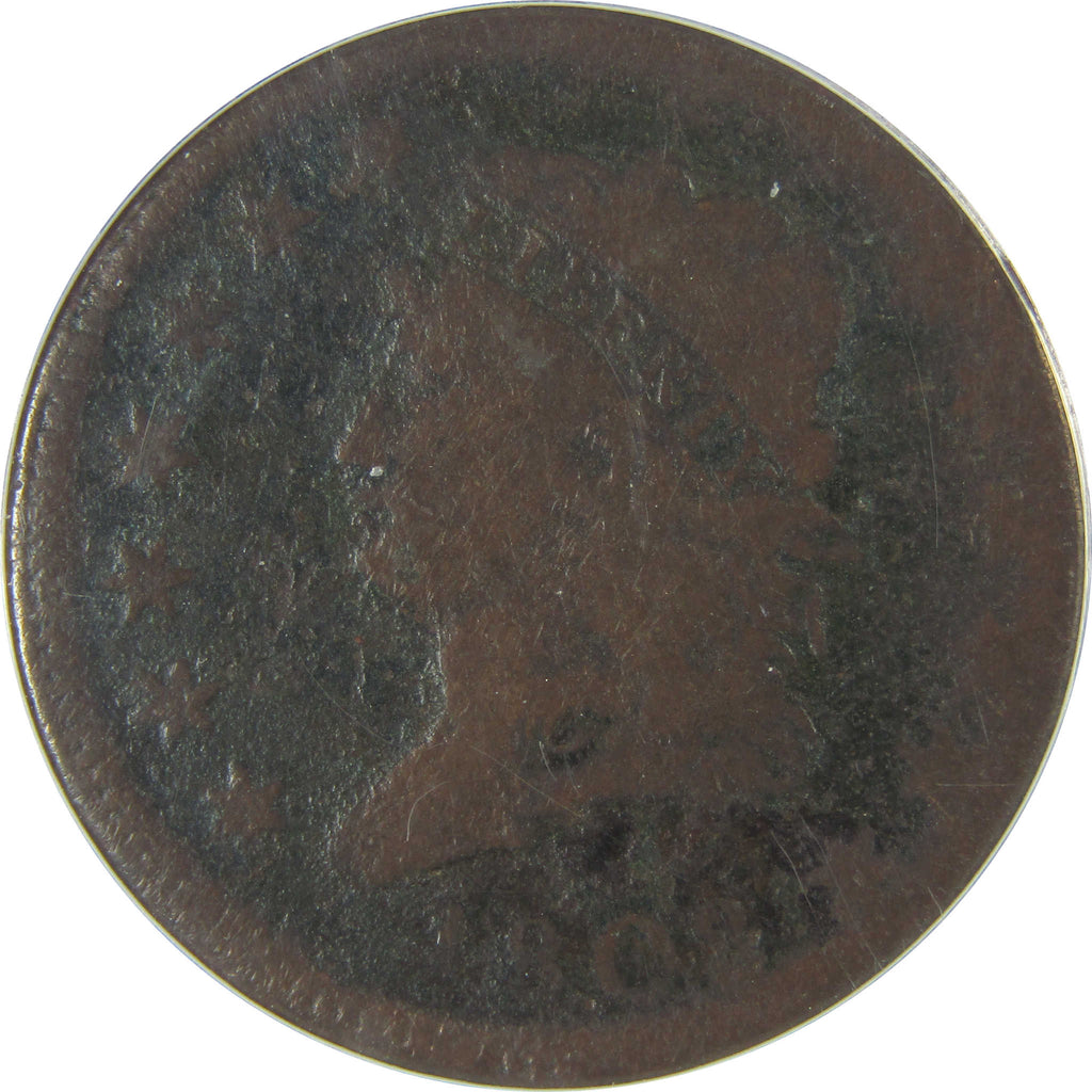 A genuine 1808 Classic Head Copper Large Cent Penny Coin, graded and certified G 4 Details by ANACS. Corroded