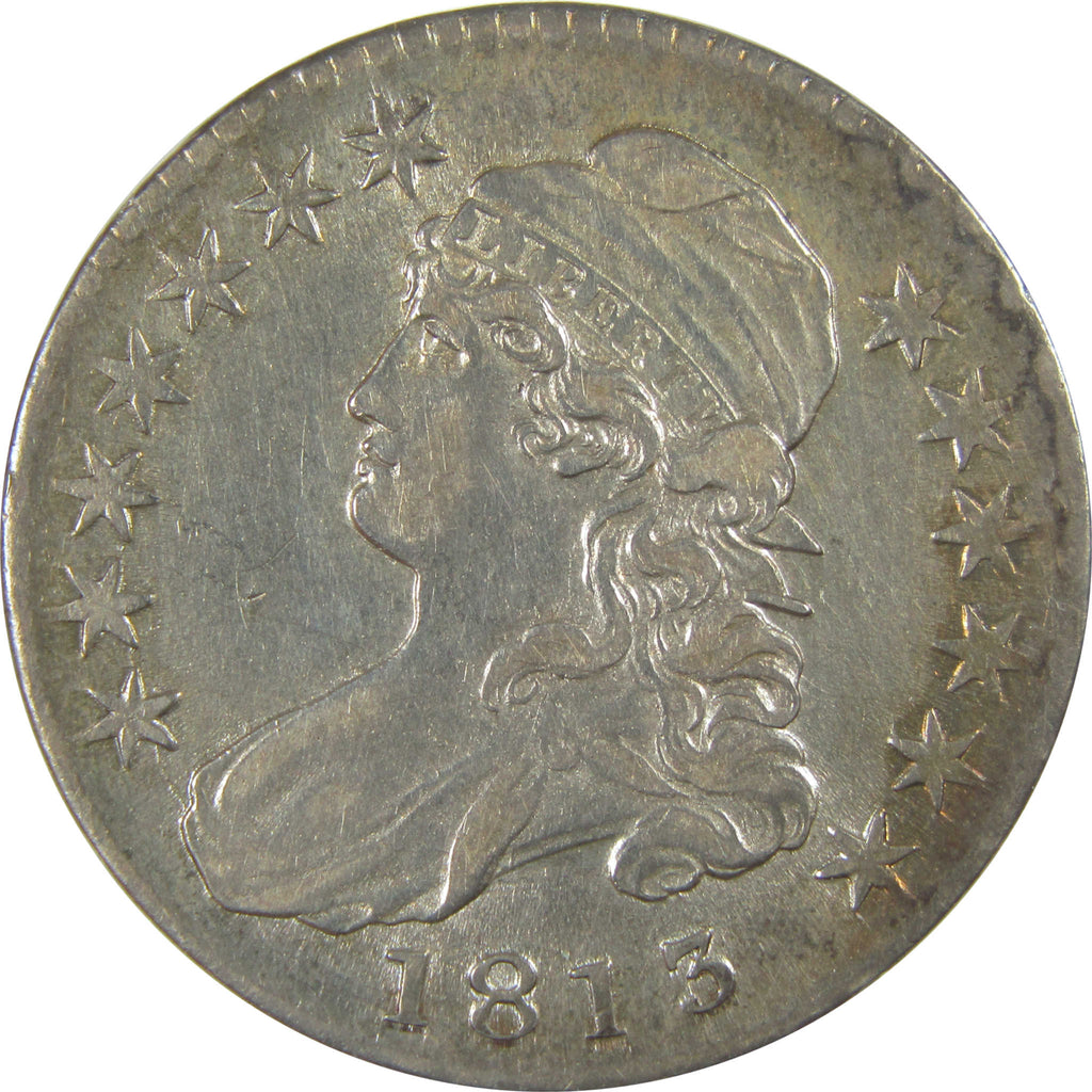 A genuine 1813 Capped Bust Silver Half Dollar Coin, in XF EF Extremely Fine Details Condition. Contains 89.24% Silver. Cleaned