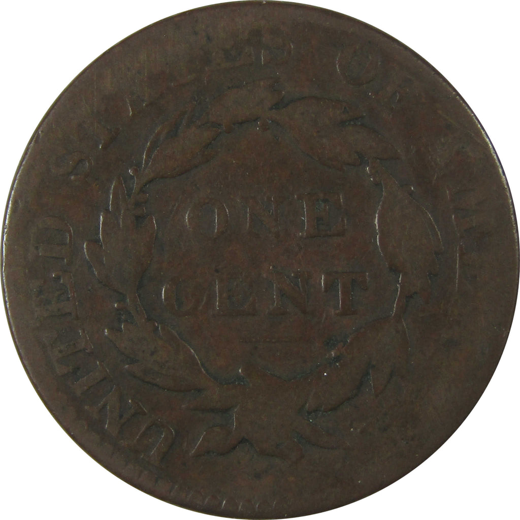 Struck over 180 years ago, this copper Coronet Head large cent - also called the Matron Head large cent - is 50% larger than today's cents. It depicts a more serious Liberty, with a diadem inscribed LIBERTY and long hair in a bun held by plain cords. The reverse shows ONE CENT surrounded by a laurel wreath and UNITED STATES OF AMERICA.