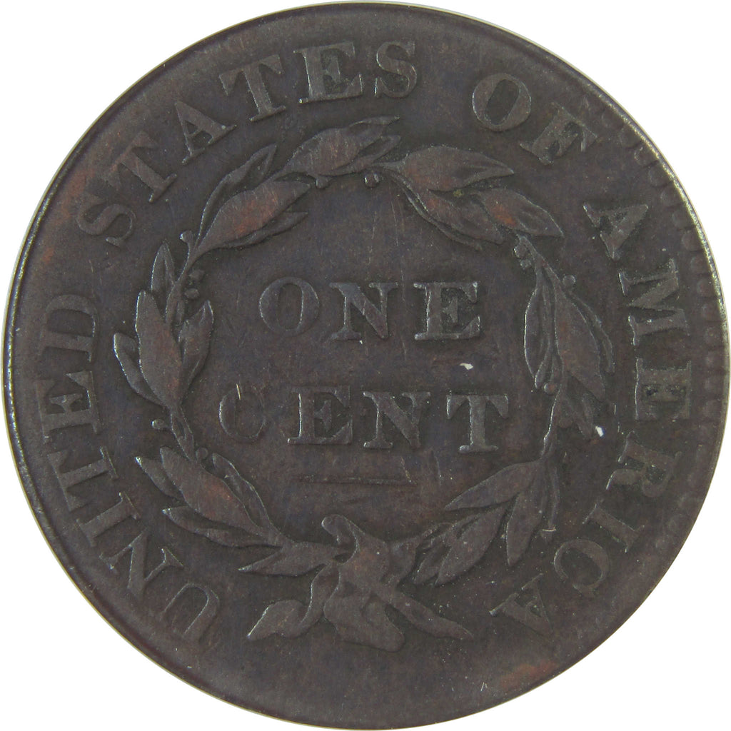 Struck over 180 years ago, this copper Coronet Head large cent - also called the Matron Head large cent - is 50% larger than today's cents. It depicts a more serious Liberty, with a diadem inscribed LIBERTY and long hair in a bun held by plain cords. The reverse shows ONE CENT surrounded by a laurel wreath and UNITED STATES OF AMERICA.