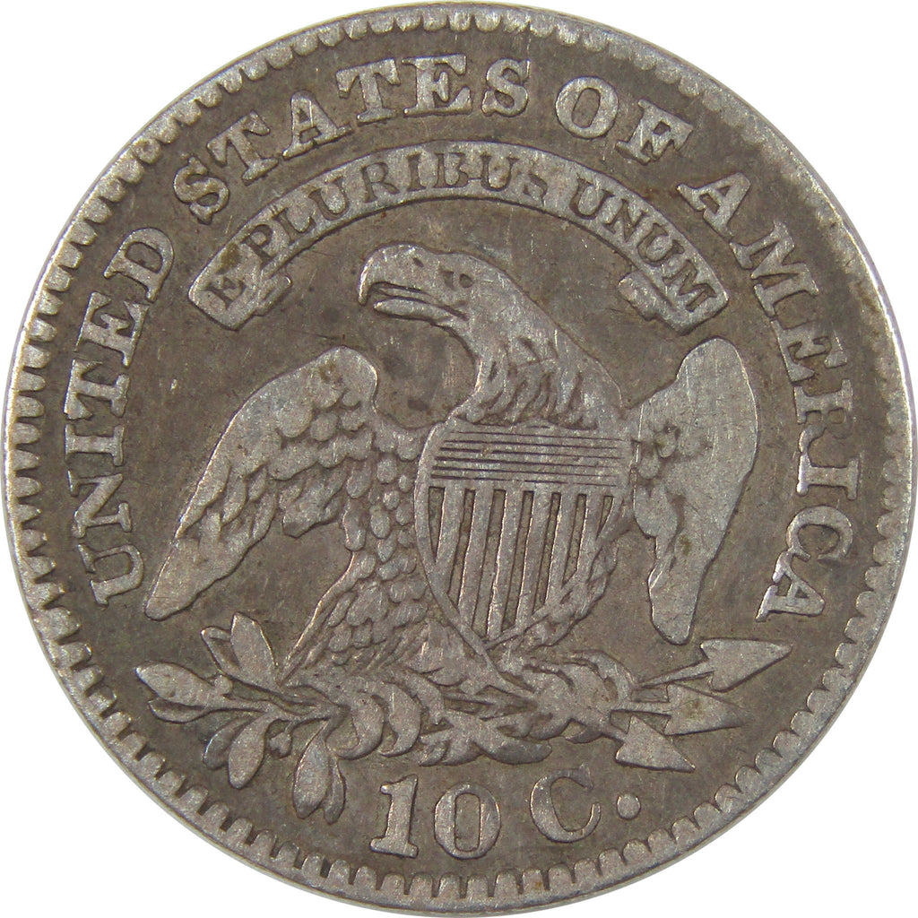 A genuine 1827 Pointed Top Capped Bust Silver Dime Coin, in F Fine Condition. Contains 89.24% Silver