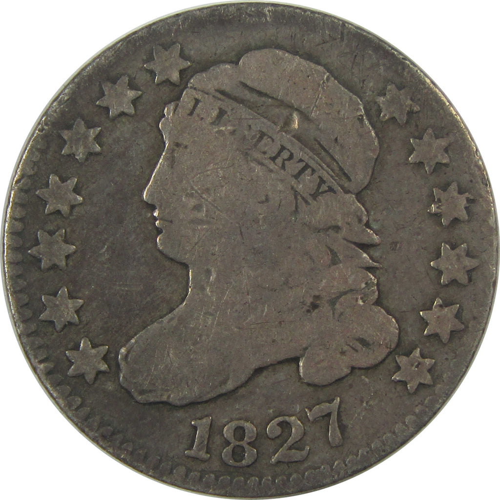 A genuine 1827 Pointed Top Capped Bust Silver Dime Coin, in VG Very Good Condition. Contains 89.24% Silver