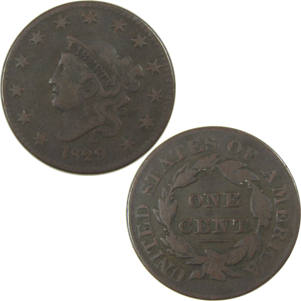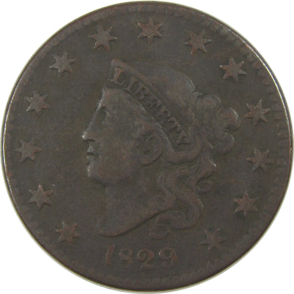A genuine 1829 Large Letters Coronet Head Copper Large Cent Penny Coin, in VG Very Good Condition