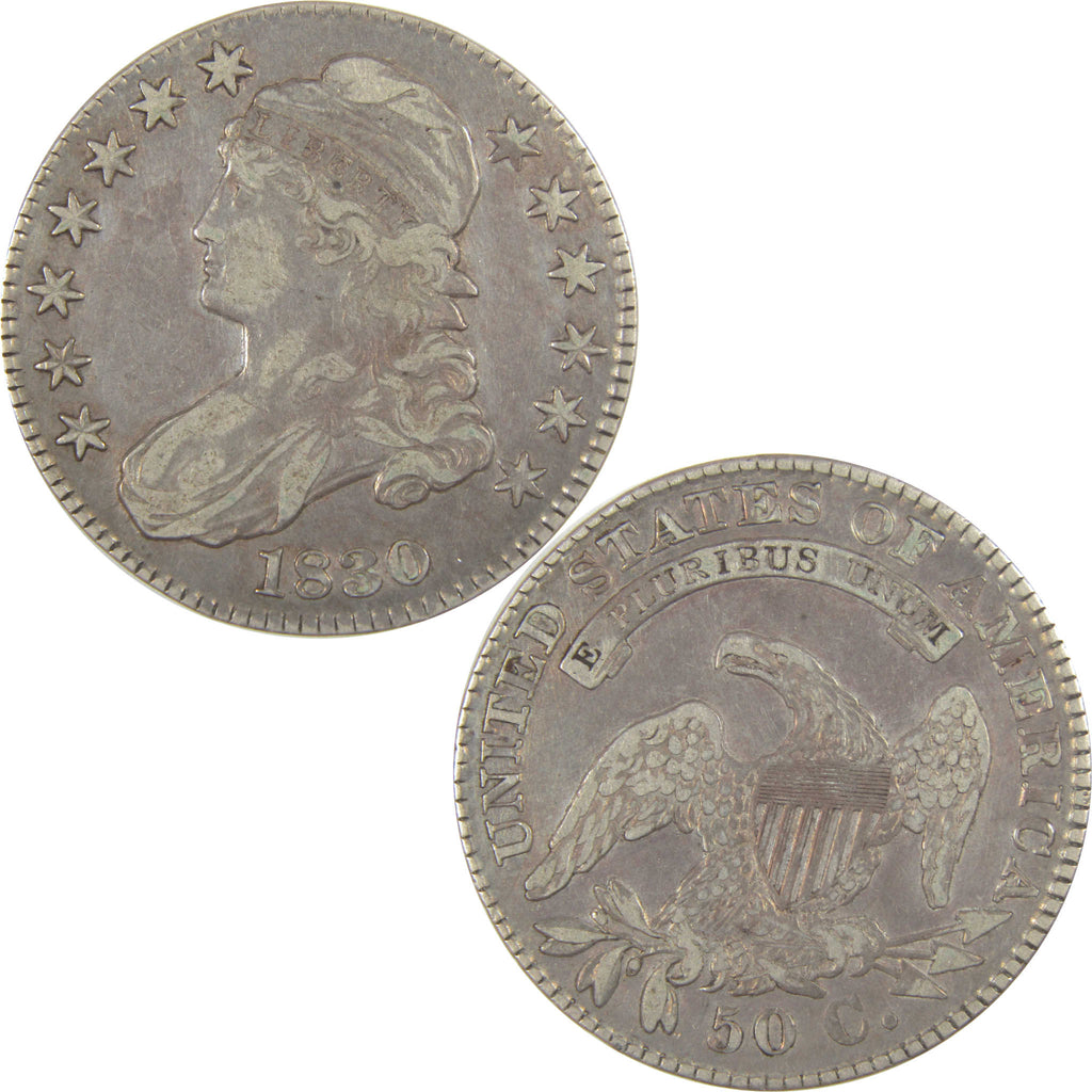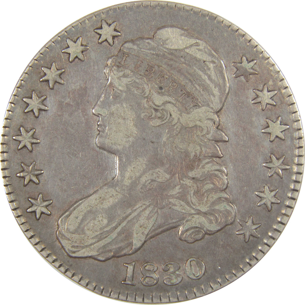 A genuine 1830 Small 0 Capped Bust Silver Half Dollar Coin, in VF Very Fine Condition. Contains 89.24% Silver