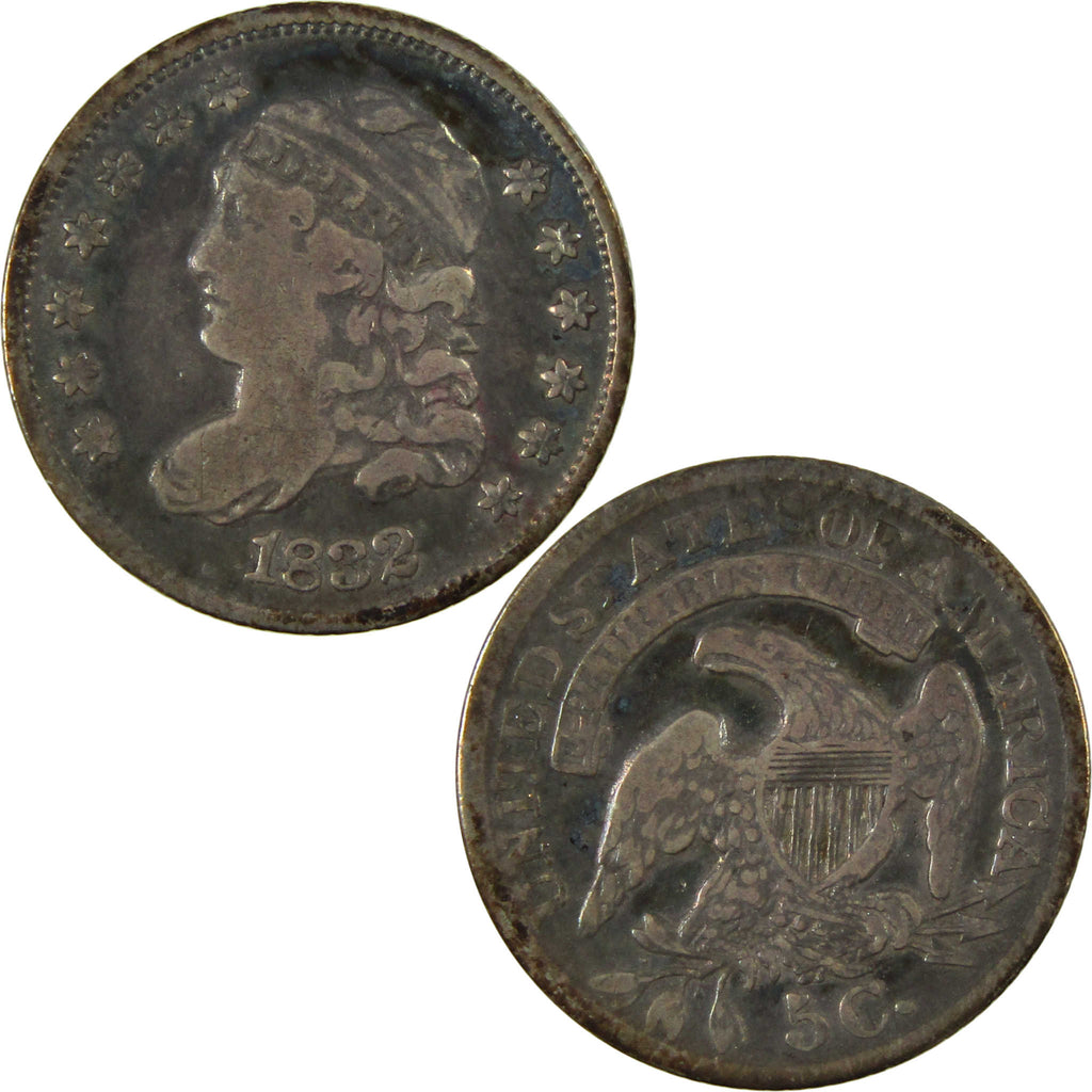 A genuine 1832 Capped Bust Silver Half Dime Coin, in F Fine Condition. Contains 89.24% Silver