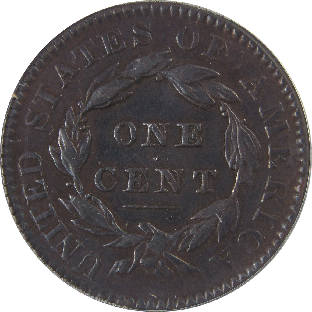 Struck over 180 years ago, this copper Coronet Head large cent - also called the Matron Head large cent - is 50% larger than today's cents. It depicts a more serious Liberty, with a diadem inscribed LIBERTY and long hair in a bun held by plain cords. The reverse shows ONE CENT surrounded by a laurel wreath and UNITED STATES OF AMERICA.