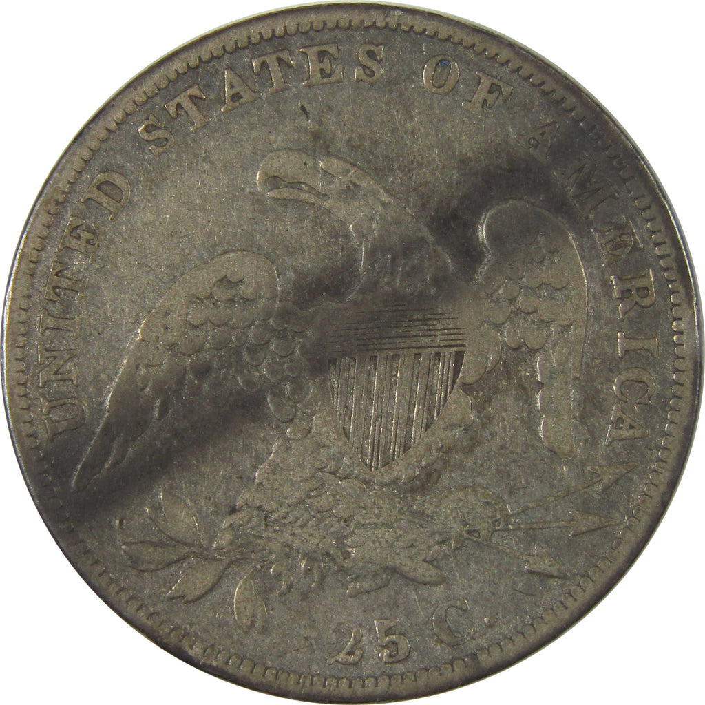 Struck over 180 years ago, this Capped Bust silver quarter bears John Reich's Capped Bust design, which William Kneass modified. It depicts Liberty in a cloth cap, surrounded by 13 stars and the date of issue. The reverse shows an American eagle with Union Shield, an olive branch and three arrows. Encircling the eagle are 25 c. and UNITED STATES OF AMERICA.