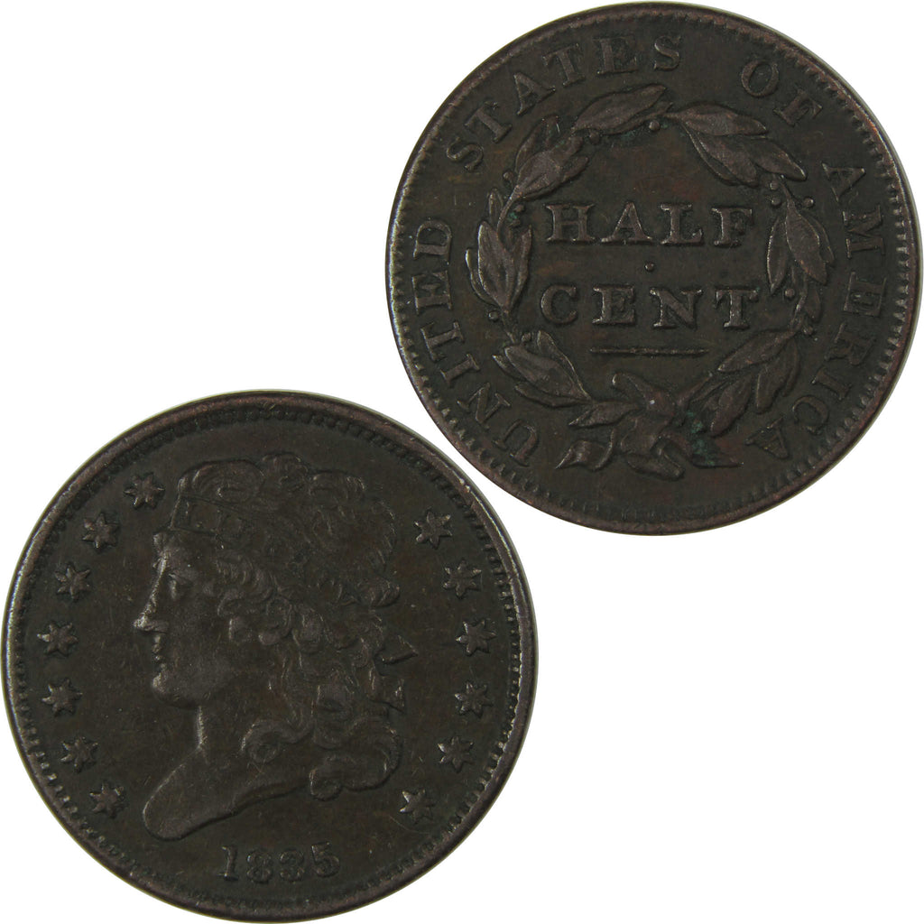 A genuine 1835 Classic Head Copper Half Cent Penny Coin, in XF EF Extremely Fine Condition
