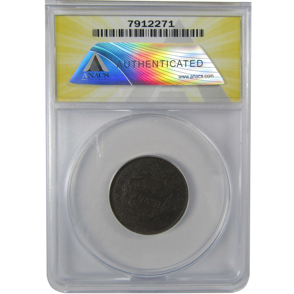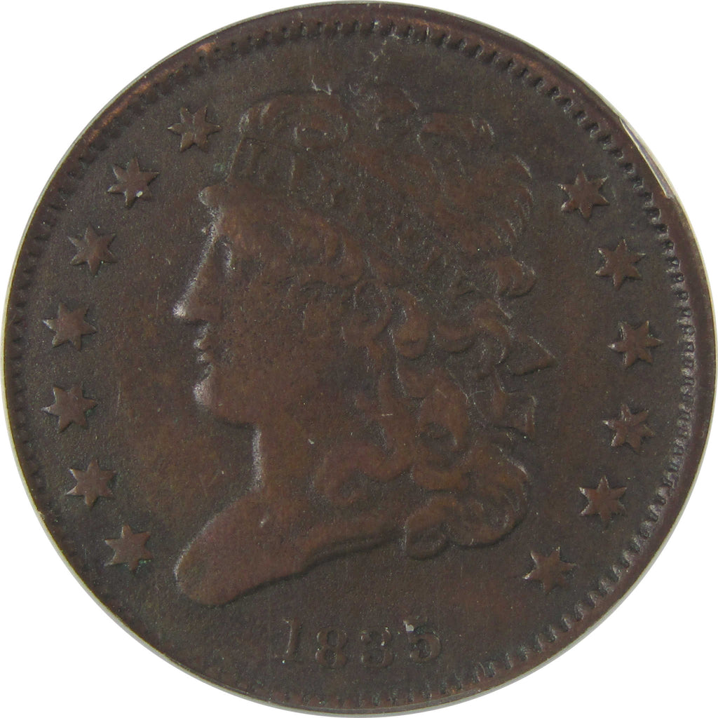 A genuine 1835 Classic Head Copper Half Cent Penny Coin, graded and certified VF 25 Details by ANACS. Corroded