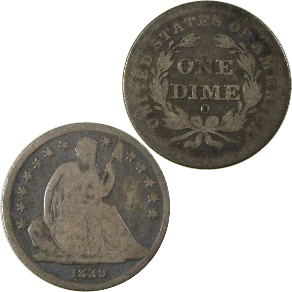 A genuine 1839 O Seated Liberty Silver Dime Coin, in VG Very Good Condition. Contains 90% Silver