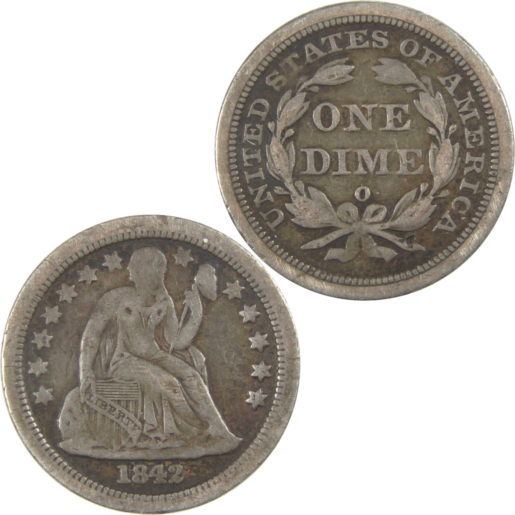 A genuine 1842 O Seated Liberty Silver Dime Coin, in VF Very Fine Condition. Contains 90% Silver