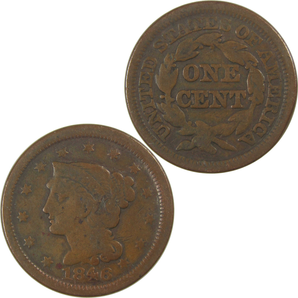 A genuine 1846 Small Date Braided Hair Copper Large Cent Penny Coin, in VG Very Good Details Condition. Cleaned