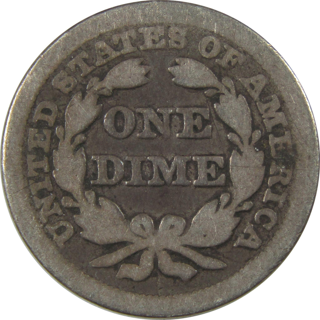 A genuine 1850 Seated Liberty Silver Dime Coin, in G Good Condition. Contains 90% Silver