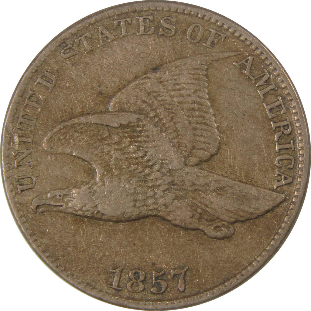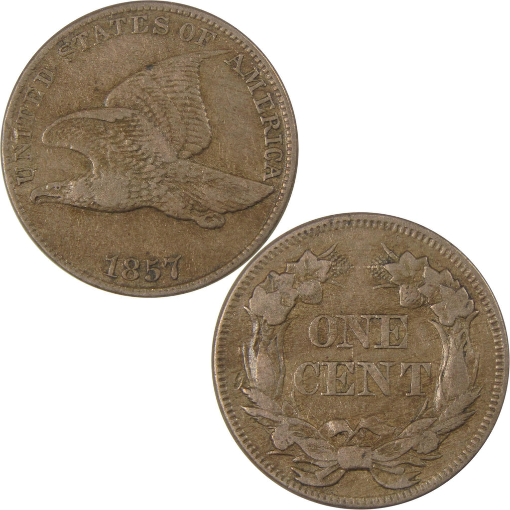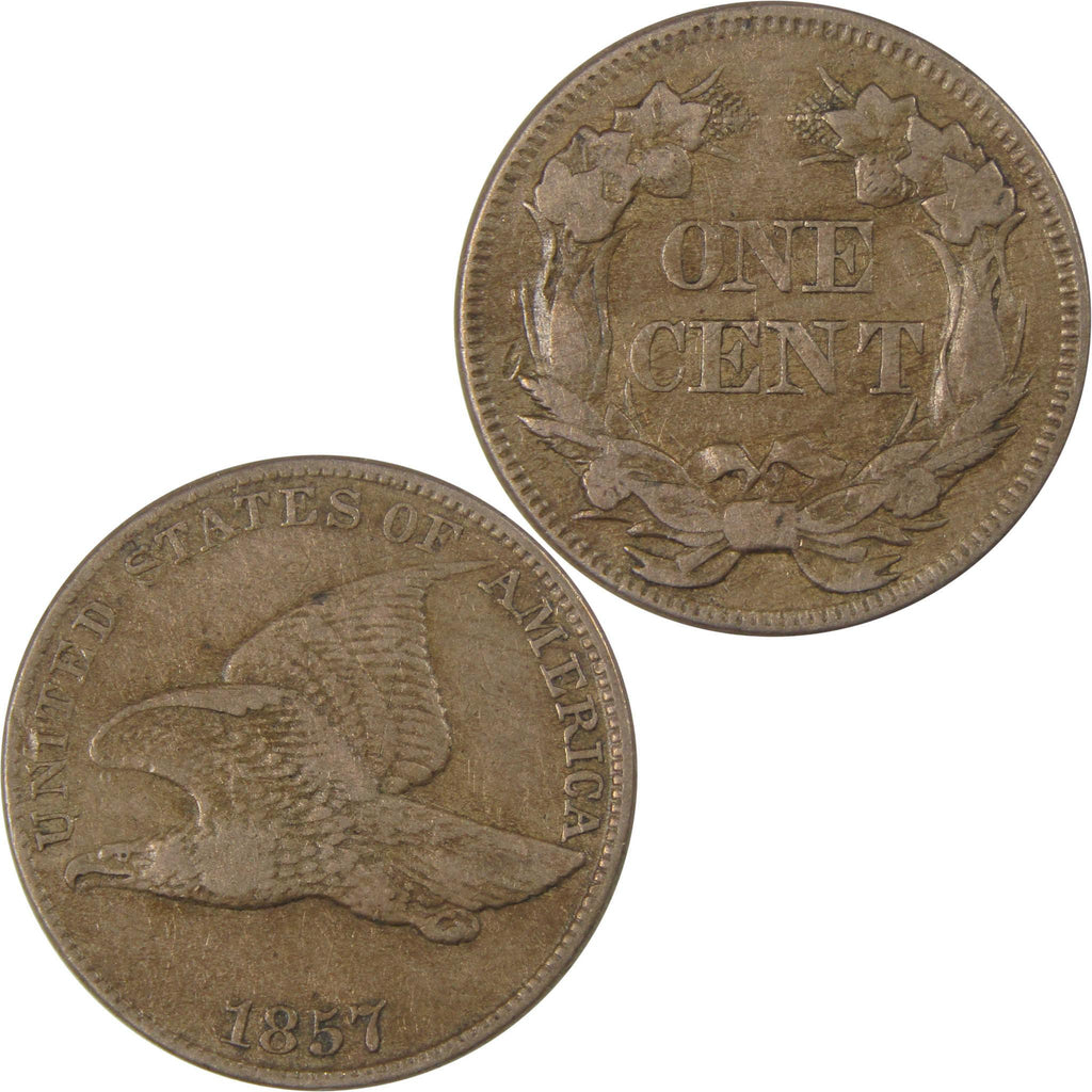 Briefly minted from 1856-1858, Flying Eagle cents were America's first small-size 1c coins. Struck in 88% copper and 12% nickel, these coins feature an eagle in flight on the obverse and a wreath of corn, wheat, cotton and tobacco on the reverse.