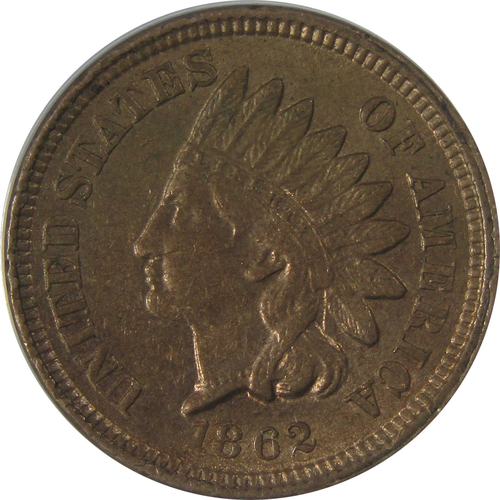 A genuine 1862 Indian Head Cent Penny Coin, graded and certified AU 55 by ANACS