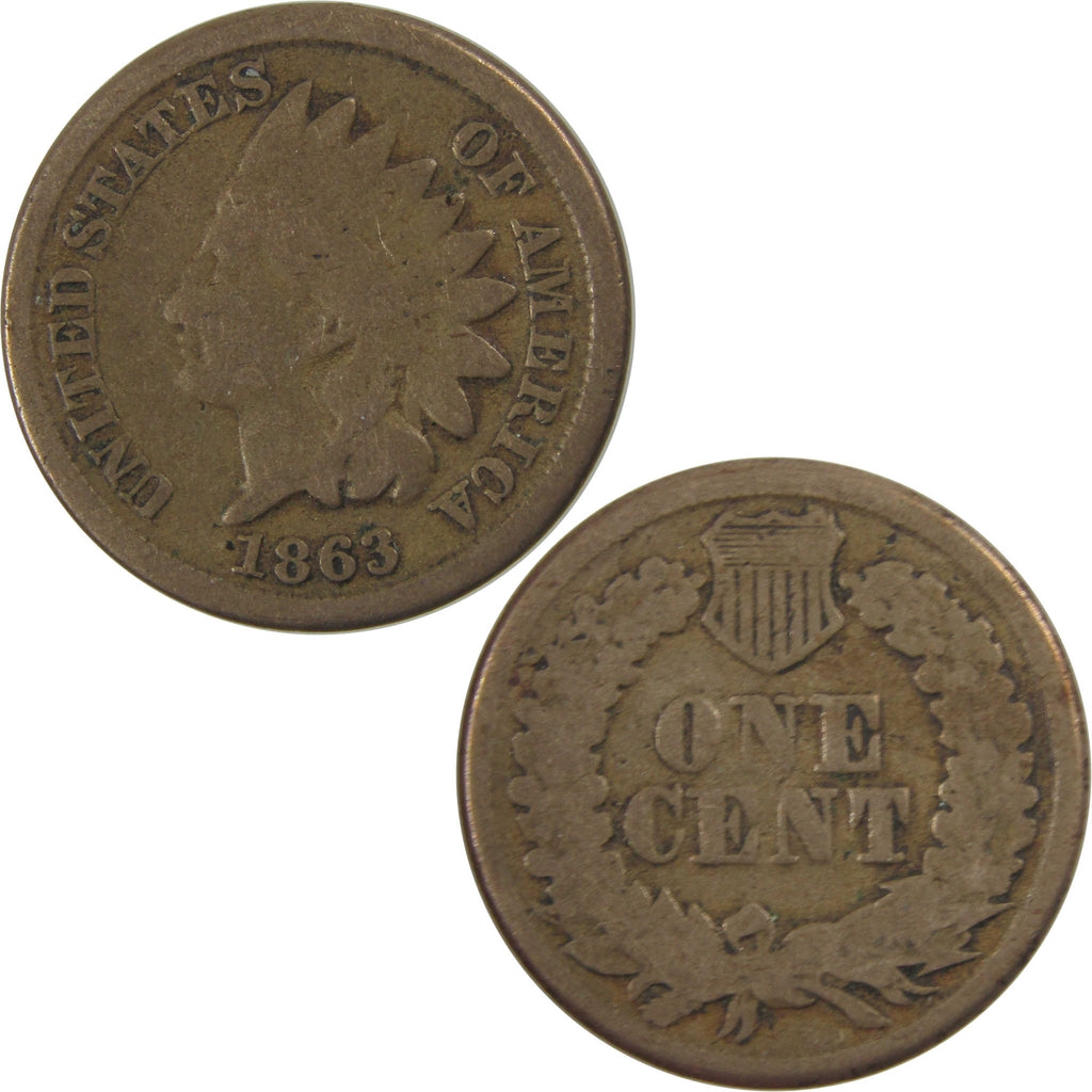 A genuine 1863 Indian Head Cent Penny Coin, in G Good Condition