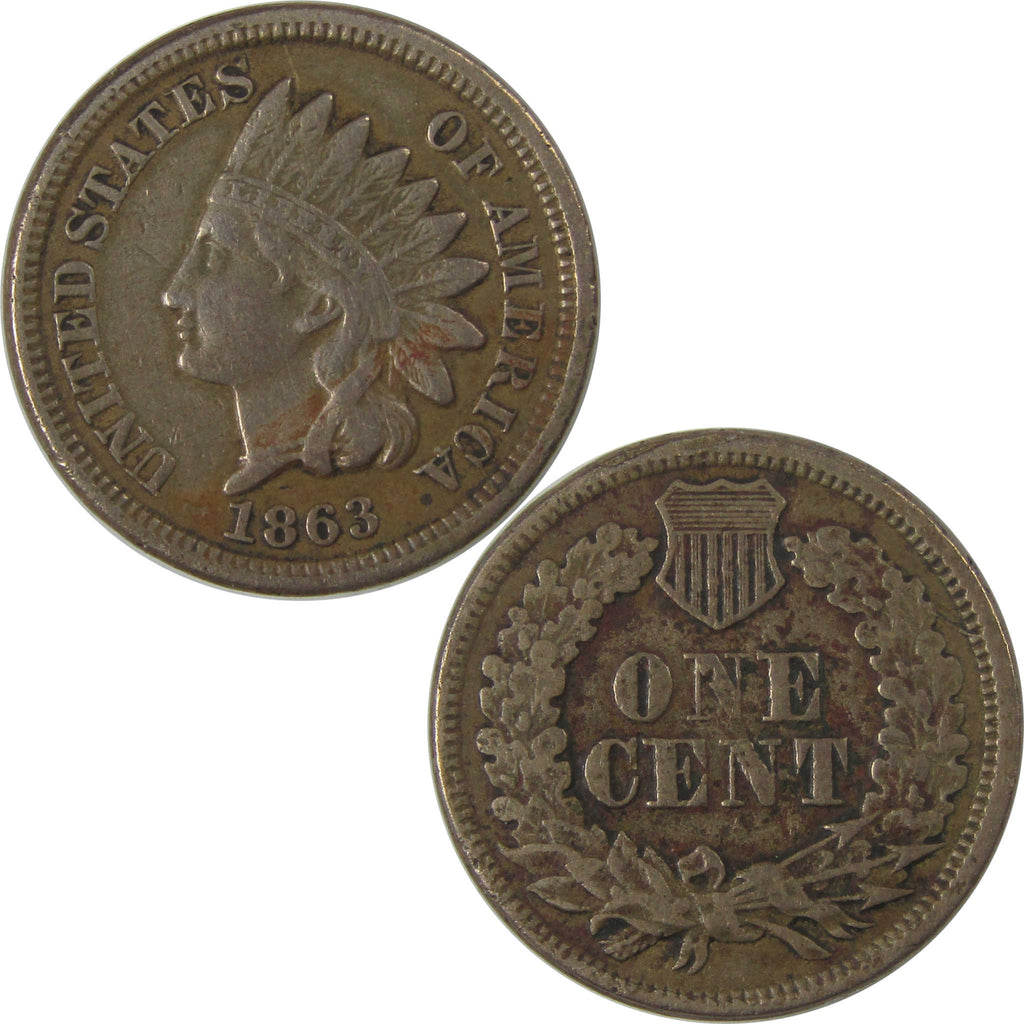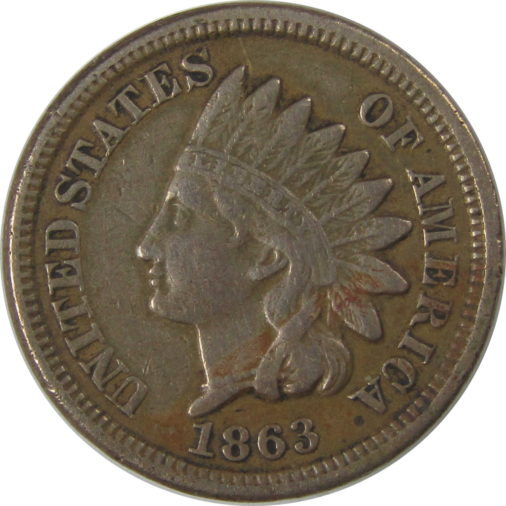 A genuine 1863 Indian Head Cent Penny Coin, in VF Very Fine Details Condition. Cleaned
