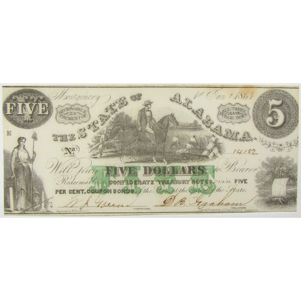 A genuine 1864 $5 Montgomery, The State of Alabama, Obsolete Note
