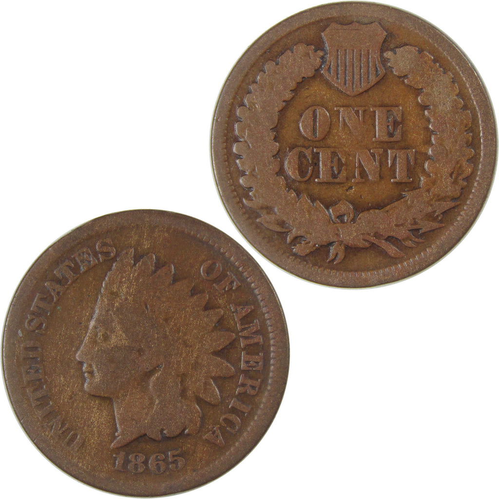 A genuine 1865 Fancy 5 Indian Head Cent Penny Coin, in G Good Condition