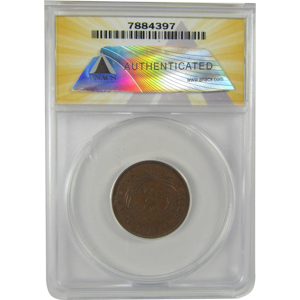 A genuine 1865 Plain 5 Two Cent Piece Coin, graded and certified EF 45 by ANACS