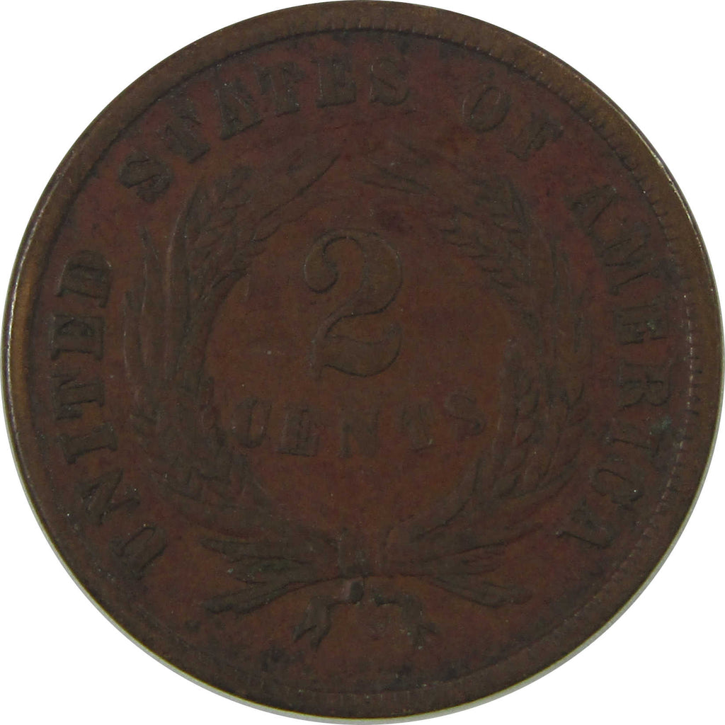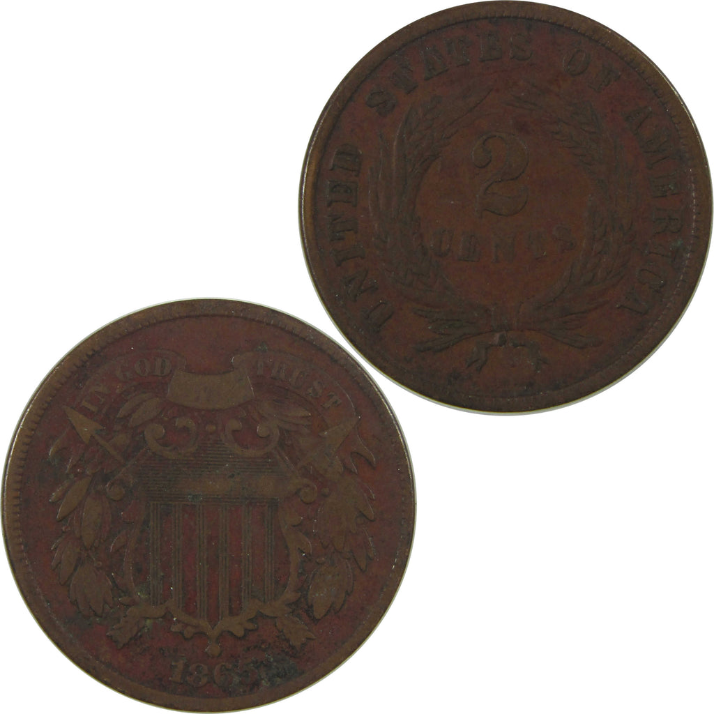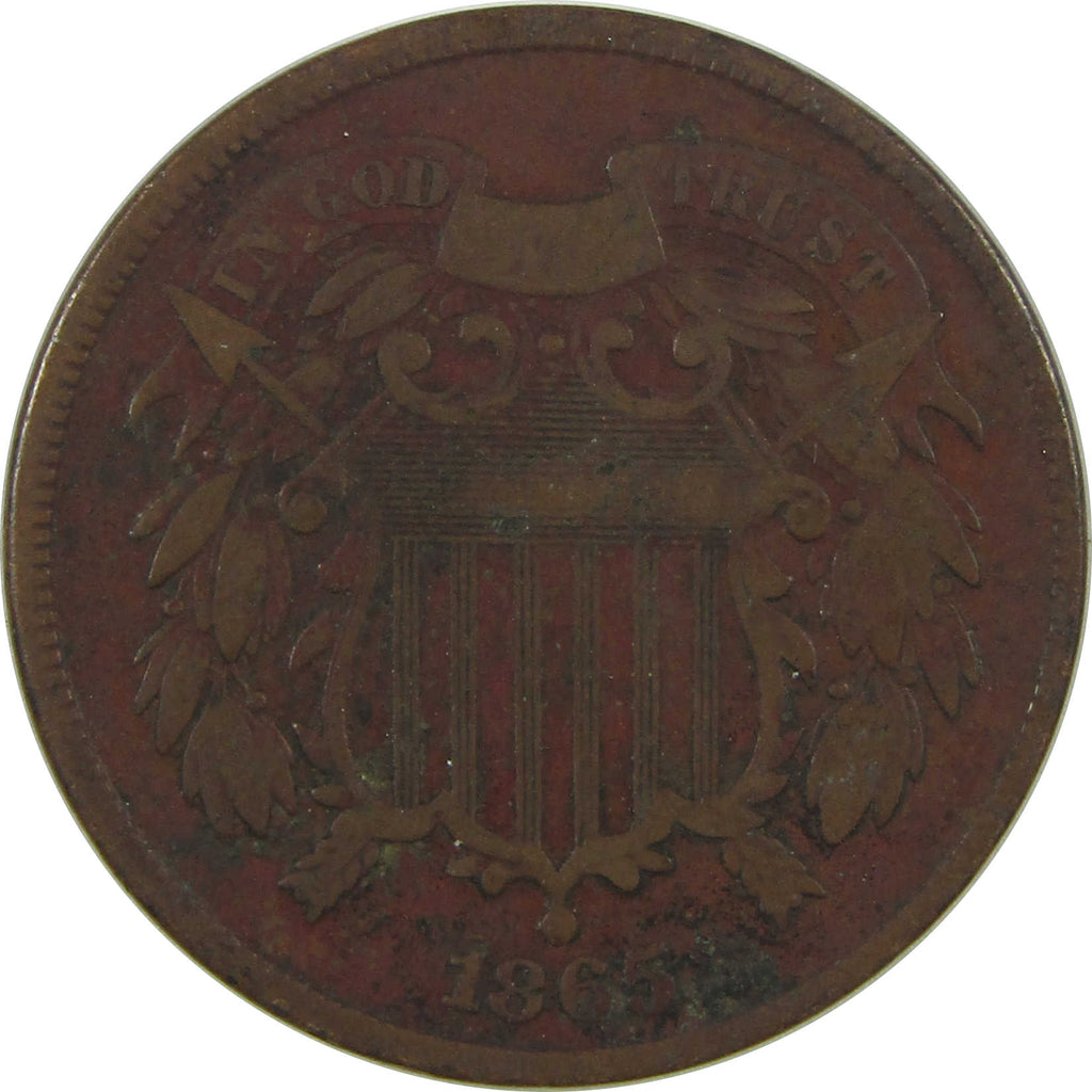A genuine 1865 Two Cent Piece Coin, in F Fine Condition