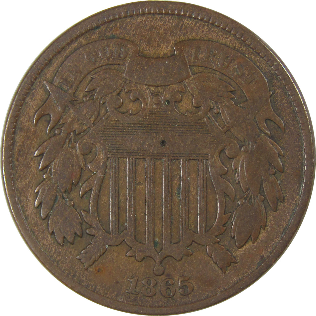 A genuine 1865 Two Cent Piece Coin, in VG Very Good Condition