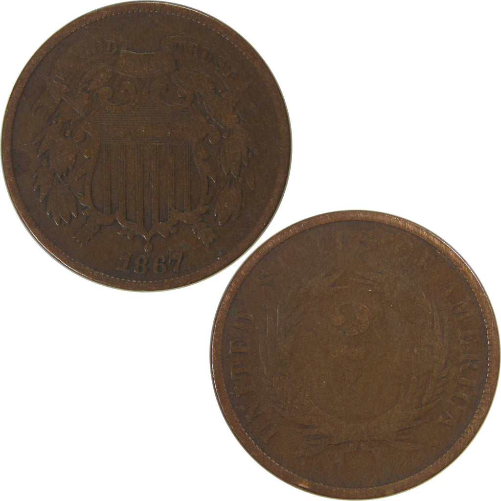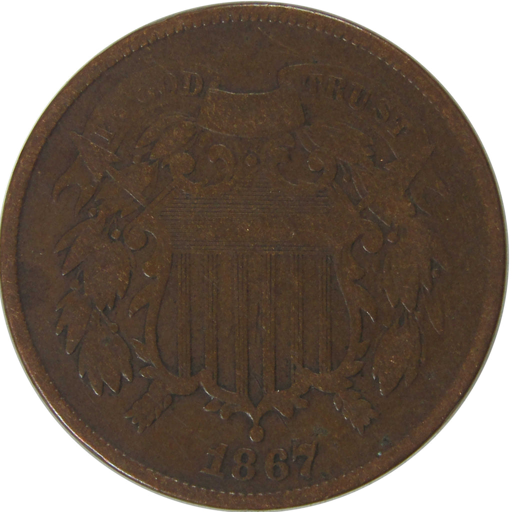 A genuine 1867 Two Cent Piece Coin, in VG Very Good Condition