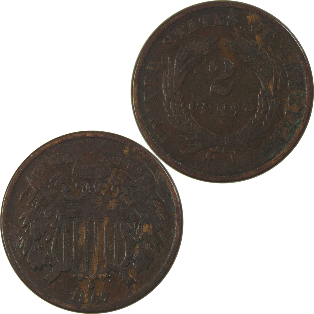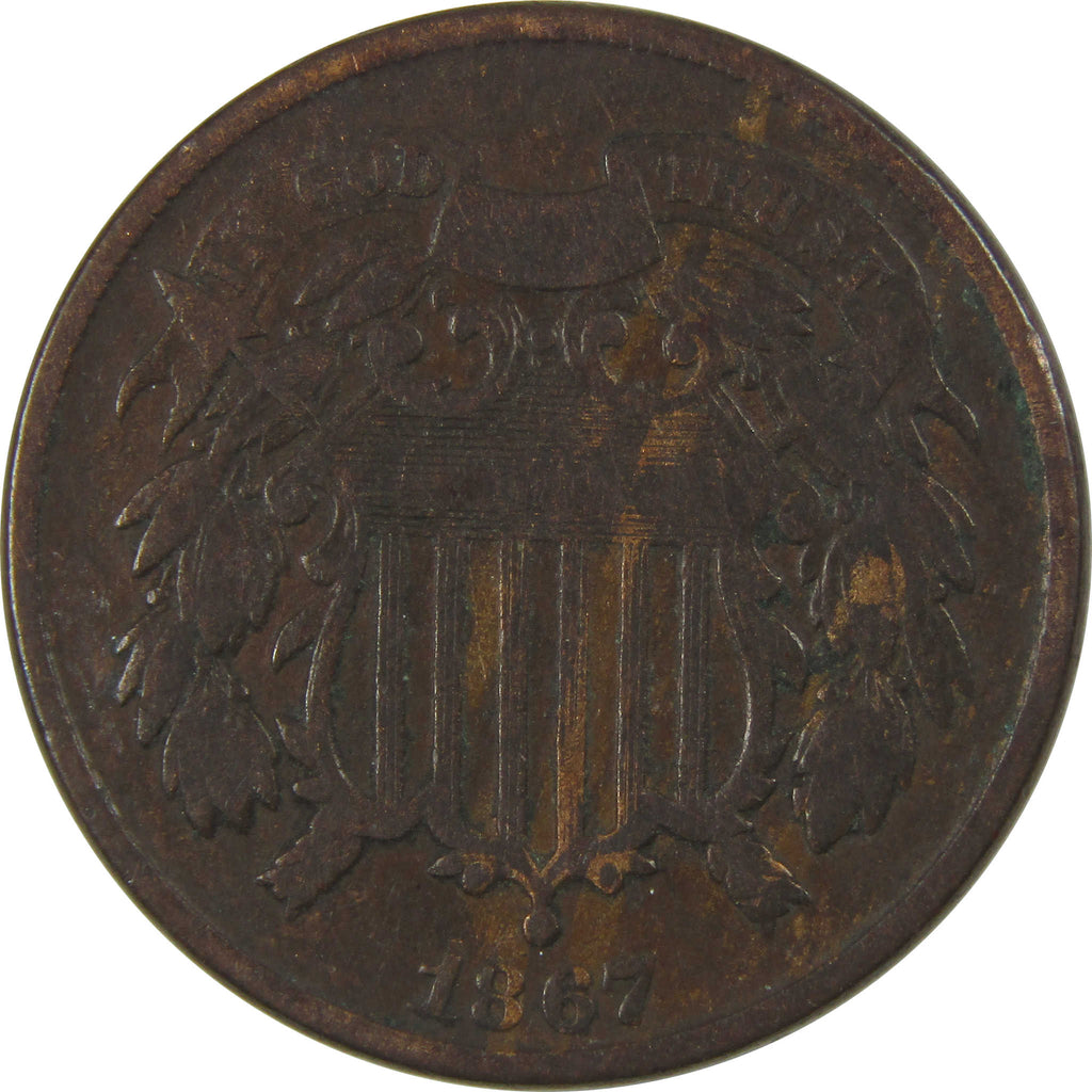 A genuine 1867 Two Cent Piece Coin, in VG Very Good Condition