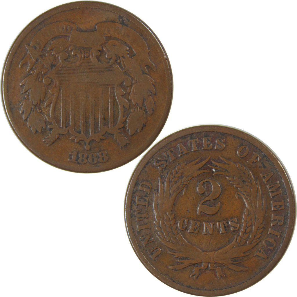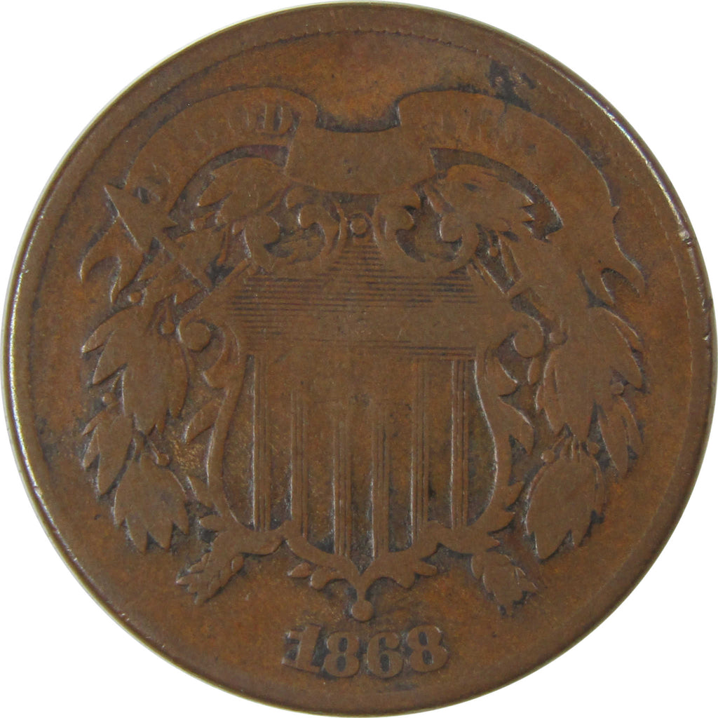 A genuine 1868 Two Cent Piece Coin, in G Good Condition