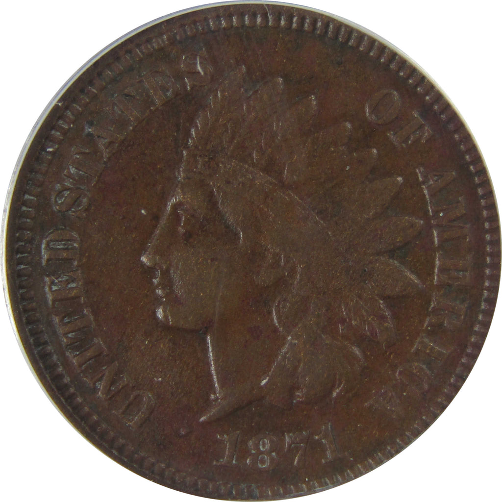 A genuine 1871 Indian Head Cent Penny Coin, graded and certified EF 40 Details by ANACS. Corroded