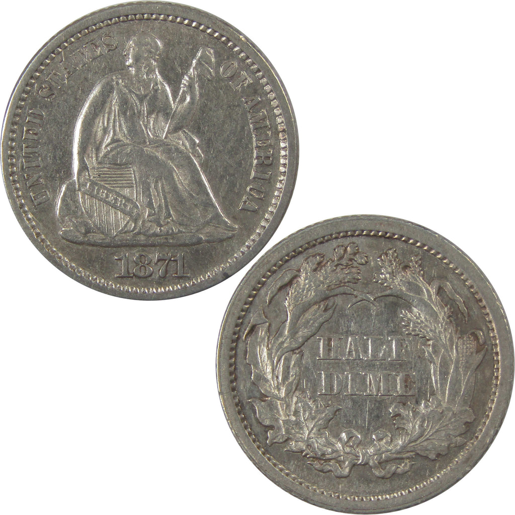 A genuine 1871 Seated Liberty Silver Half Dime Coin, in AU About Uncirculated Condition. Contains 90% Silver