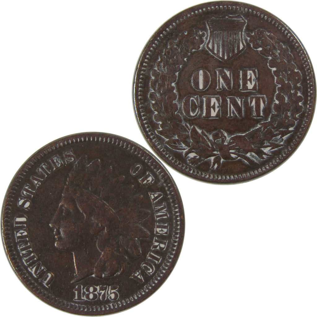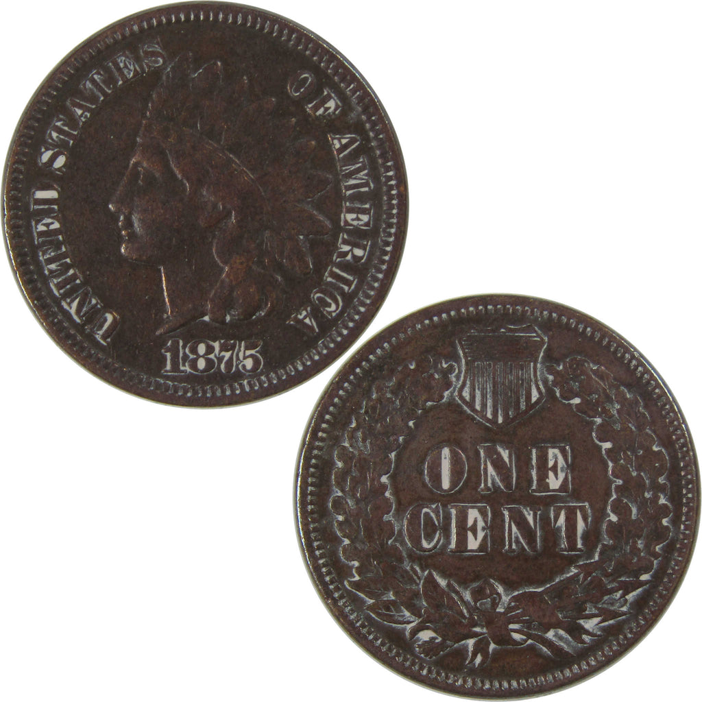 A genuine 1875 Indian Head Cent Penny Coin, in VF Very Fine Details Condition. Cleaned