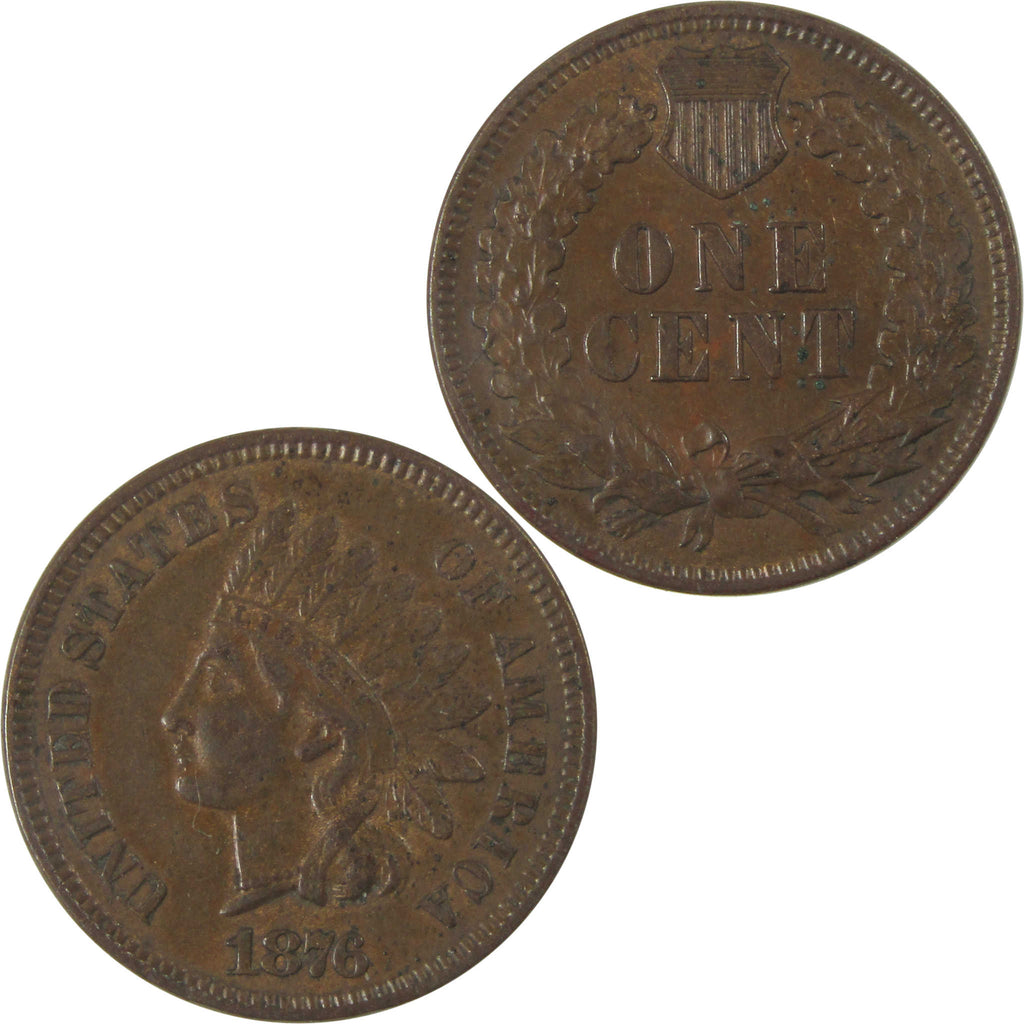 A genuine 1876 Indian Head Cent Penny Coin, in CH AU Choice About Uncirculated Condition