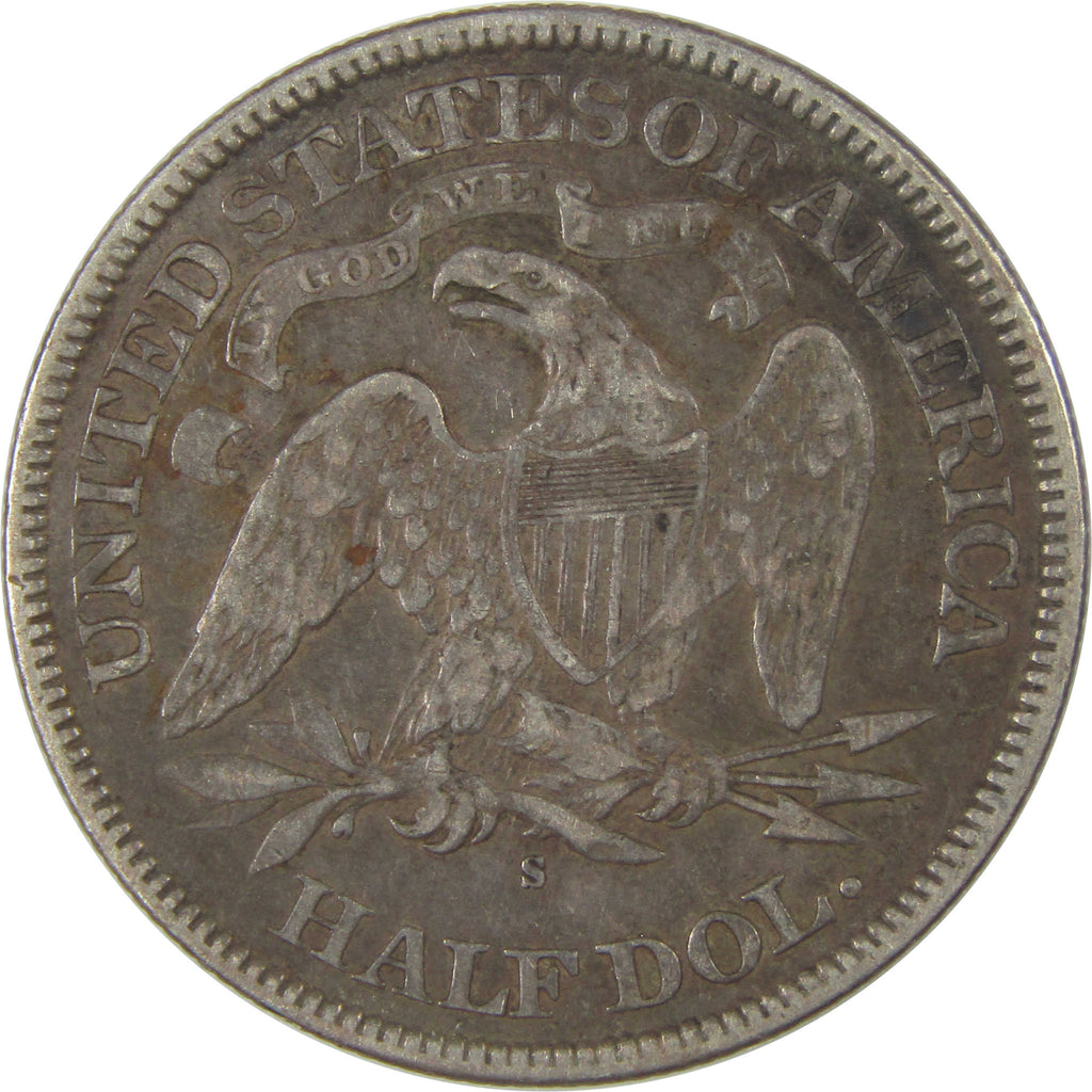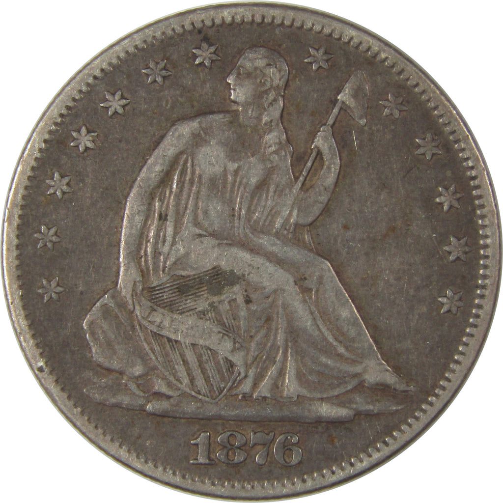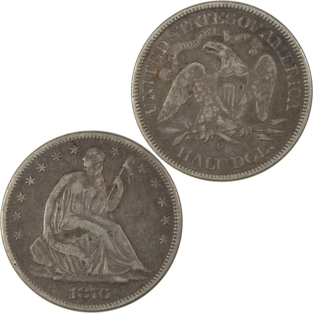 A genuine 1876 S Seated Liberty Silver Half Dollar Coin, in VF Very Fine Condition. Contains 90% Silver