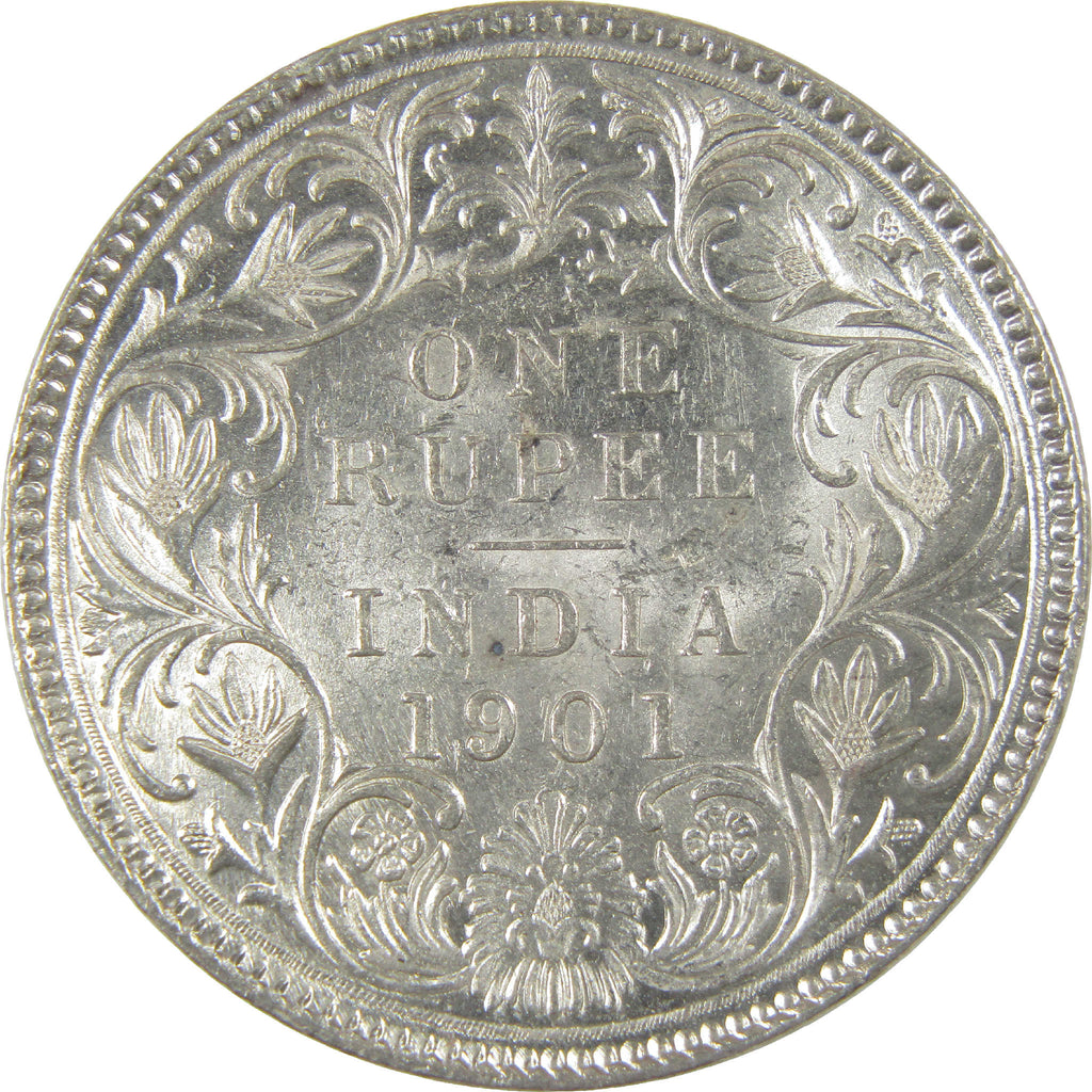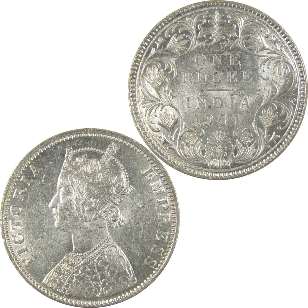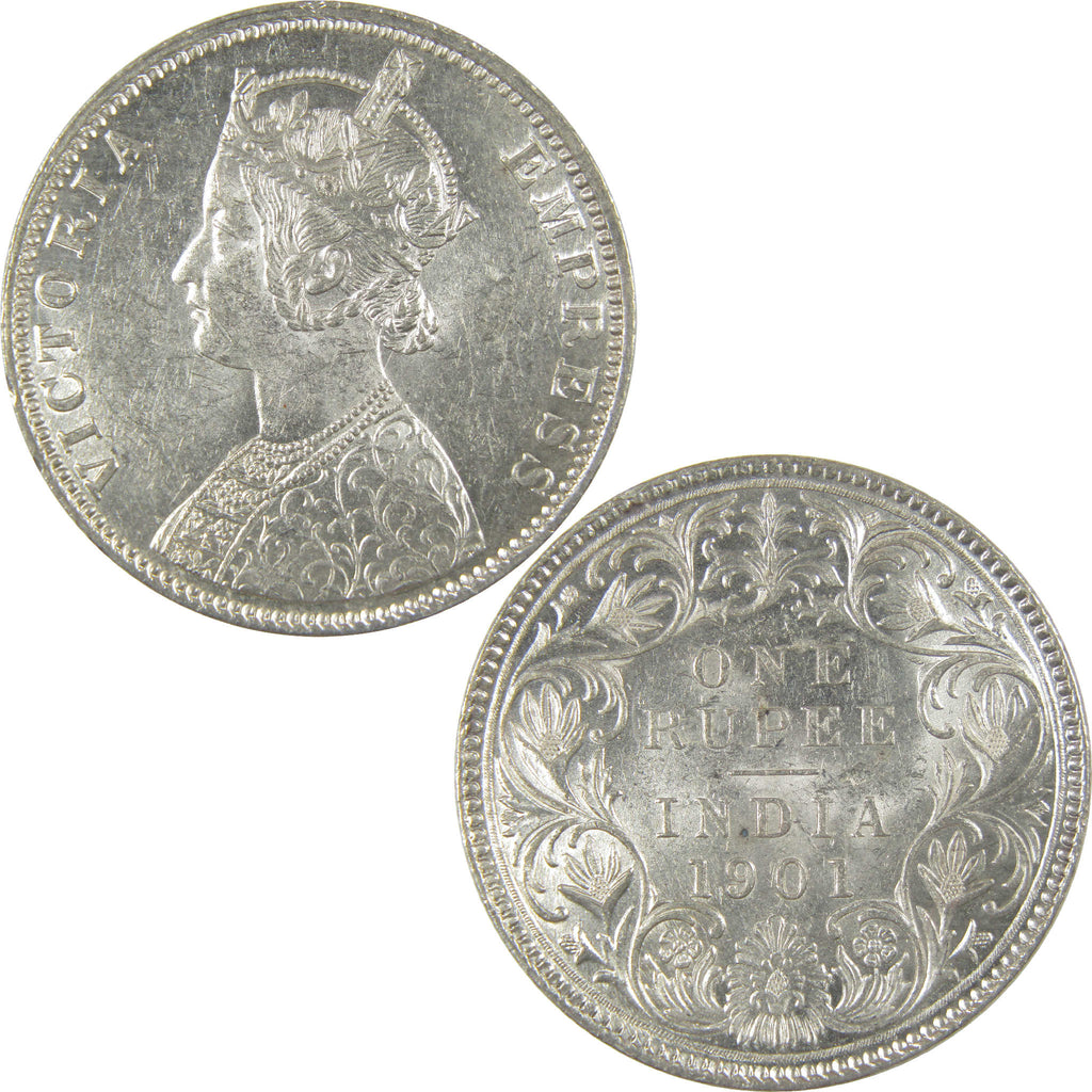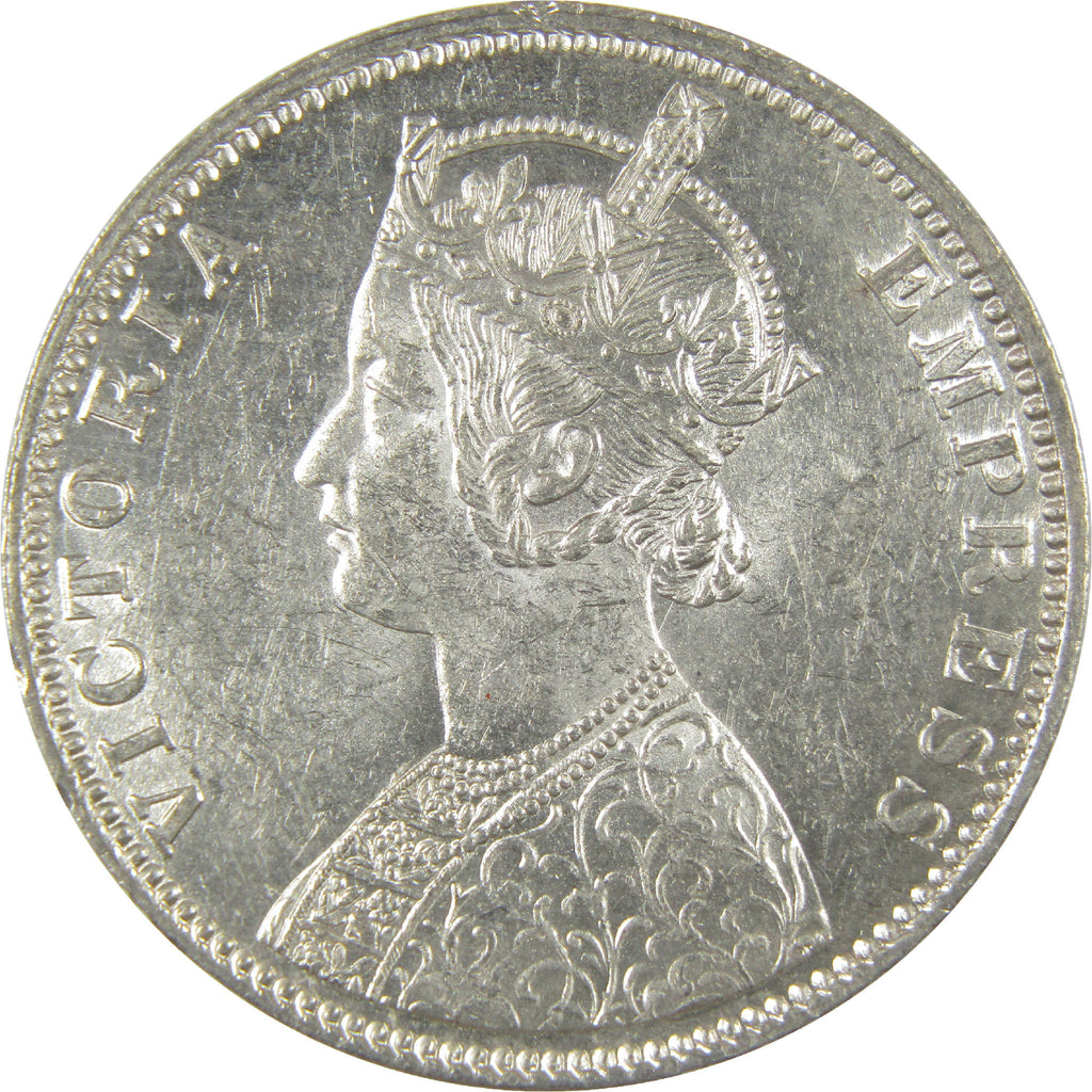 A genuine 1877-1901 Victoria Silver Rupee Coin, in XF EF Extremely Fine Condition. Measures 30.79 mm in diameter, weighs 11.66 grams, and is composed of 0.917 silver. The obverse shows the crowned head of Empress Victoria.