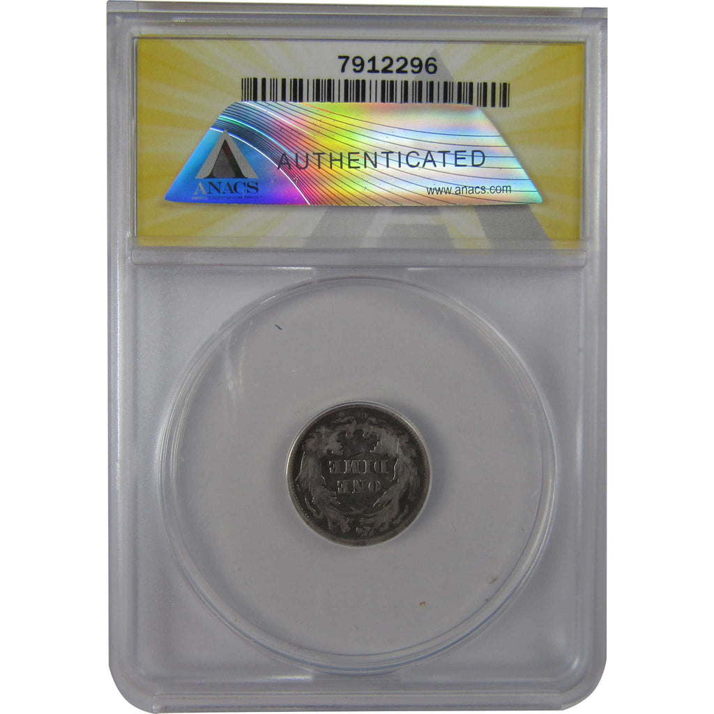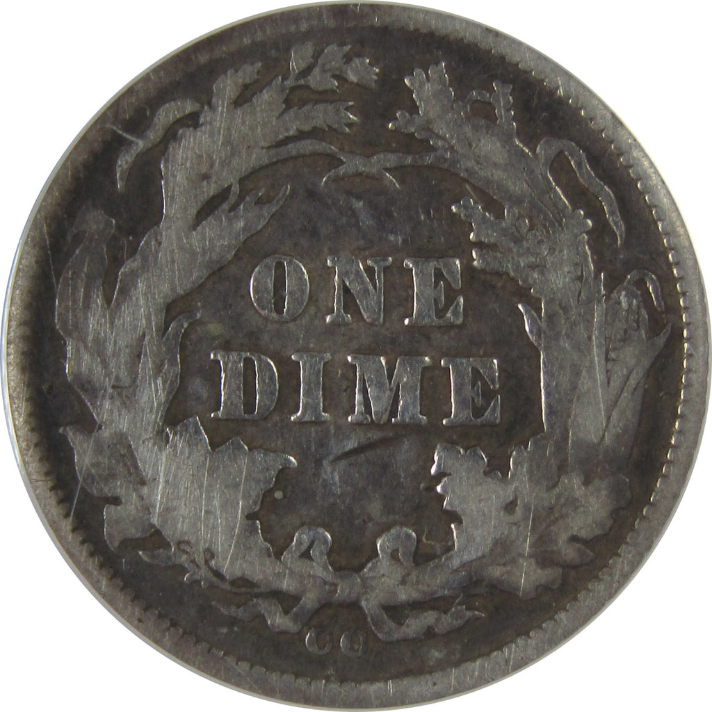 A genuine 1877 CC Seated Liberty Silver Dime Coin, graded and certified VF 20 Details by ANACS. Contains 90% Silver. Scratched, Cleaned