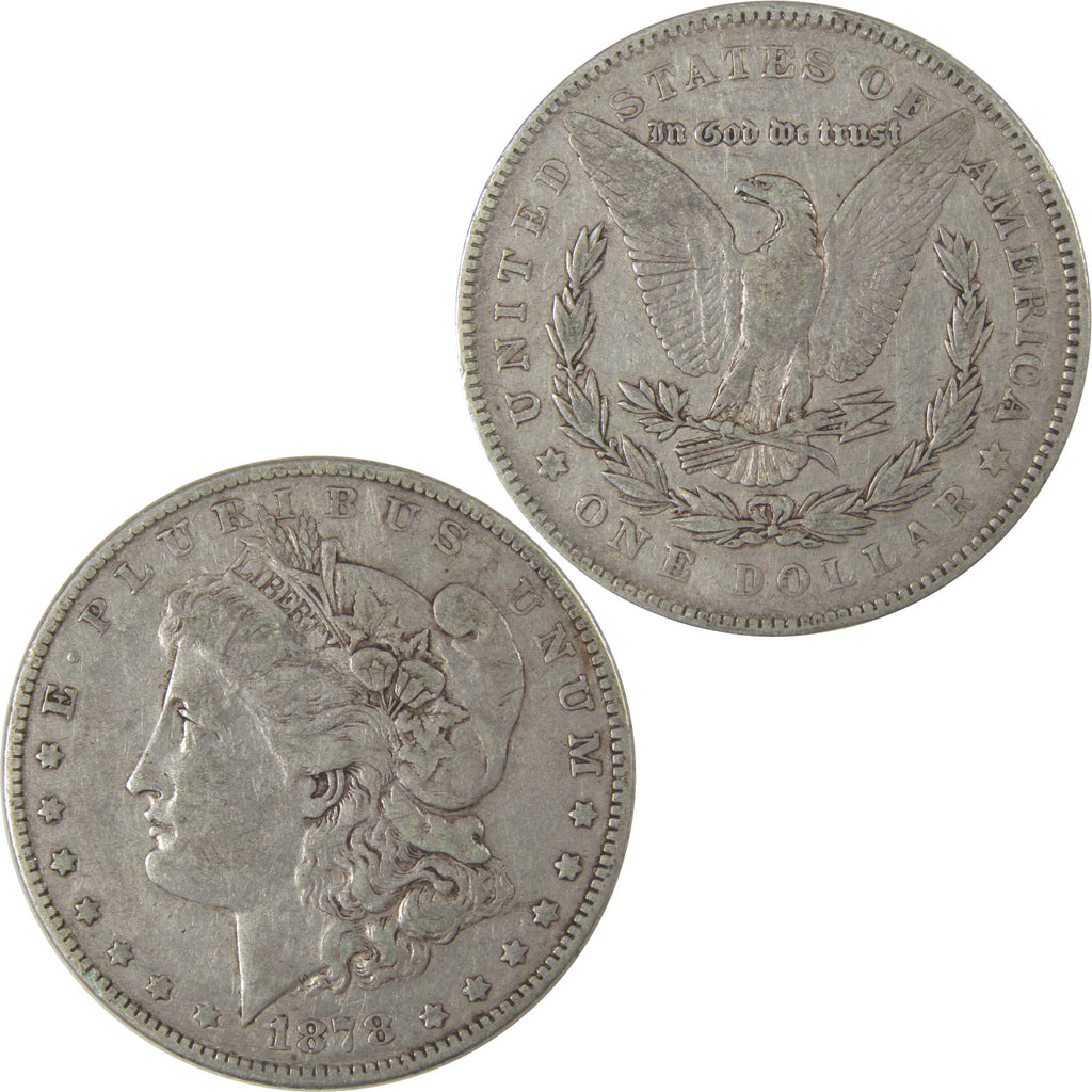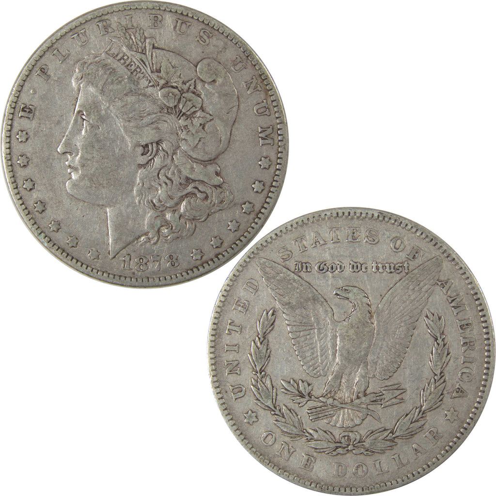 A genuine 1878 7TF, Rev 78 Morgan Silver Dollar Coin, in VF Very Fine Condition. Contains 90% Silver