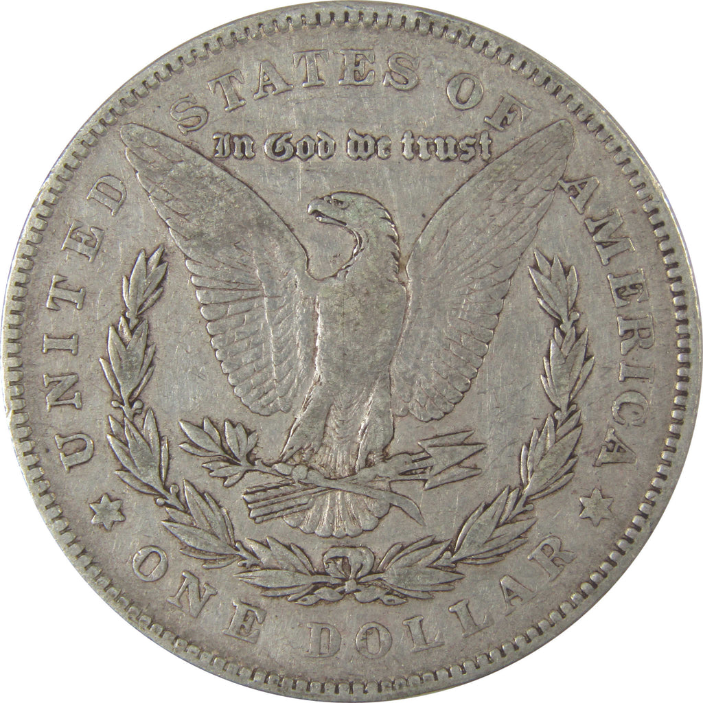 This large 90% silver Morgan dollar bears George T. Morgan's classic depiction of Liberty facing left in a Phrygian cap and a spray of leaves held by a ribbon inscribed LIBERTY. The reverse features an eagle clutching a branch and three arrows.