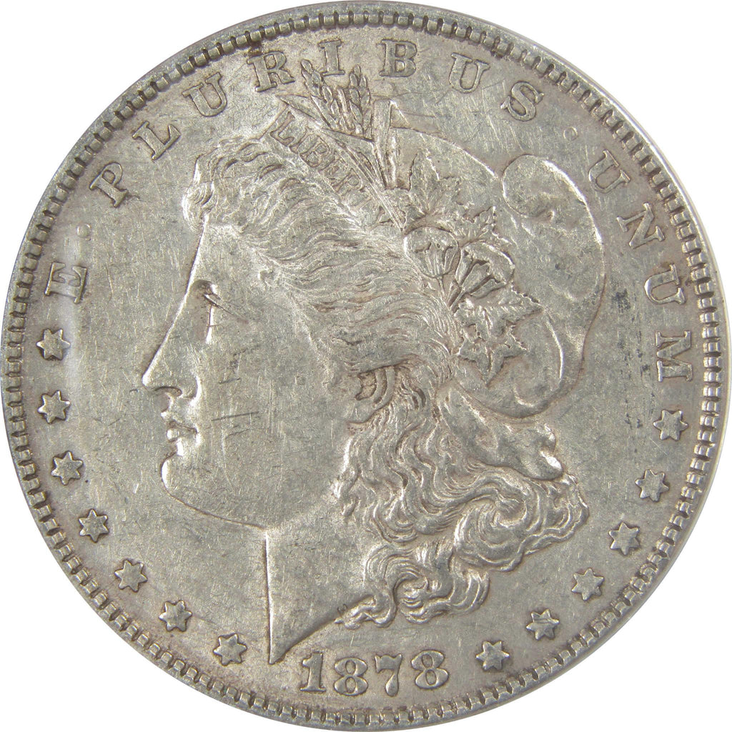 A genuine 1878 7TF, Rev 78 Morgan Silver Dollar Coin, graded and certified EF 45 by ANACS. Contains 90% Silver