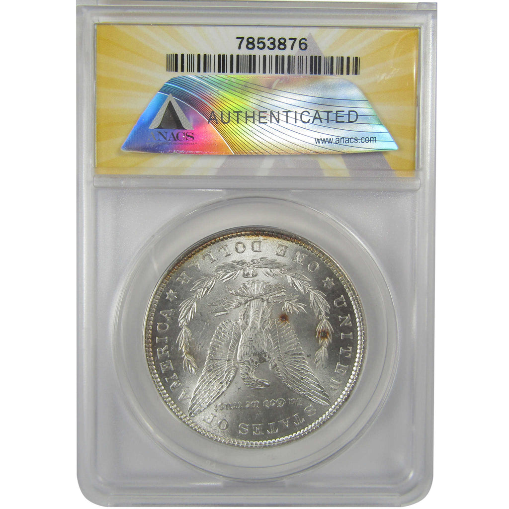 A genuine 1878 7TF, Rev 79 Morgan Silver Dollar Coin, graded and certified MS 63 by ANACS. Contains 90% Silver