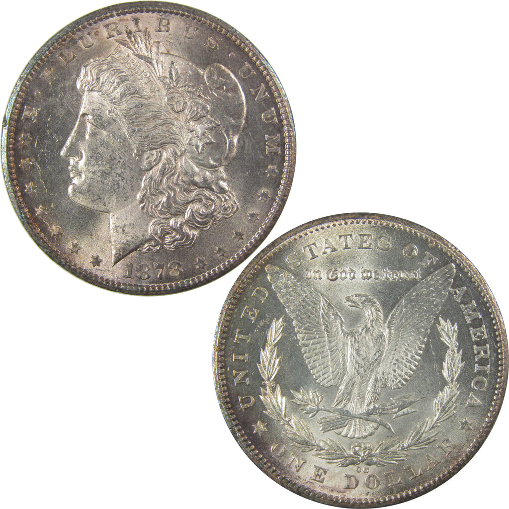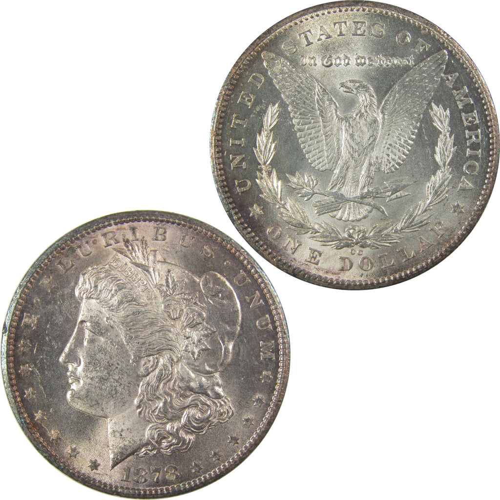 A genuine 1878 CC Morgan Silver Dollar Coin, in BU Choice Uncirculated Mint State Condition. Contains 90% Silver. Toned