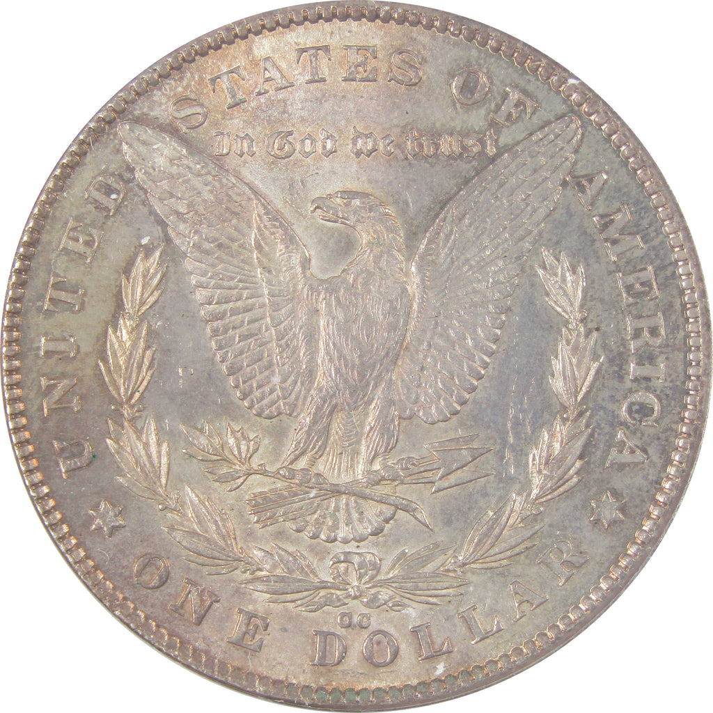 This large 90% silver Morgan dollar bears George T. Morgan's classic depiction of Liberty facing left in a Phrygian cap and a spray of leaves held by a ribbon inscribed LIBERTY. The reverse features an eagle clutching a branch and three arrows.