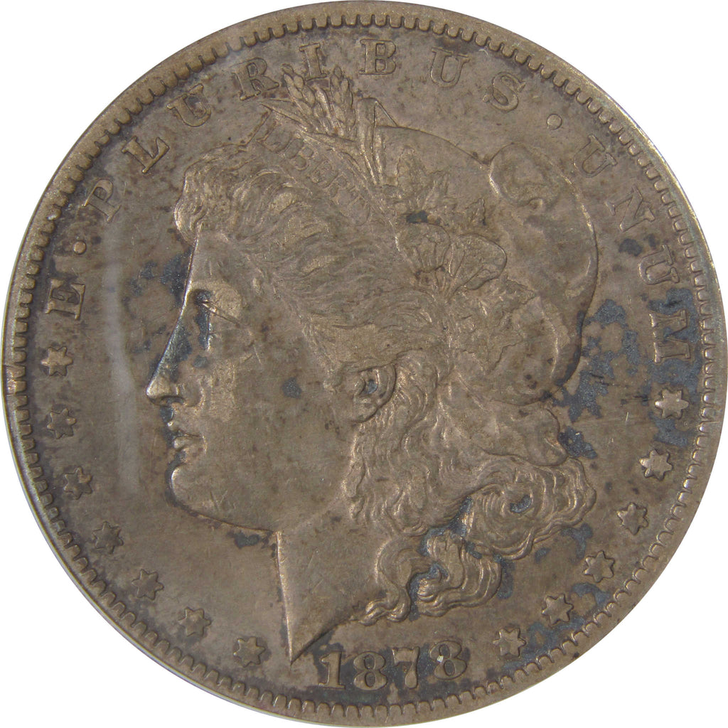 A genuine 1878 CC Morgan Silver Dollar Coin, graded and certified VF 35 by ANACS. Contains 90% Silver