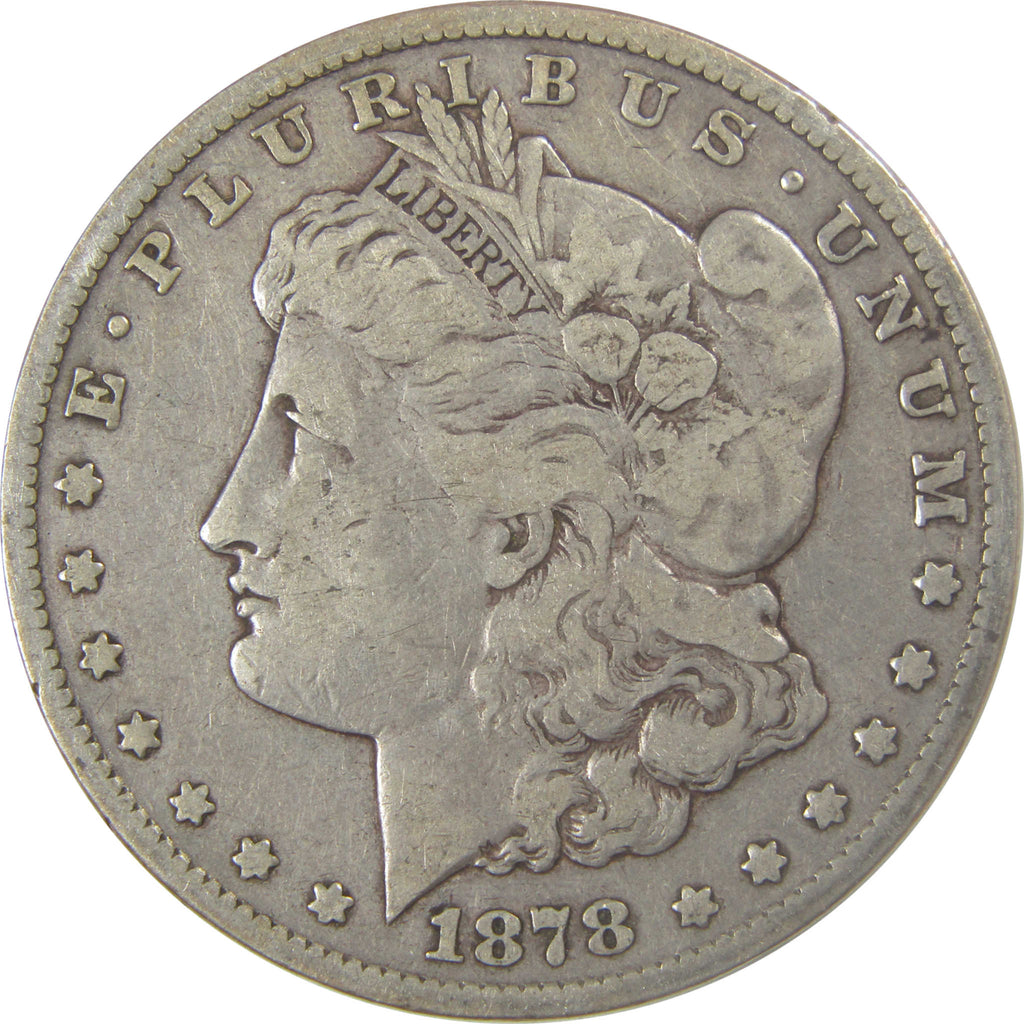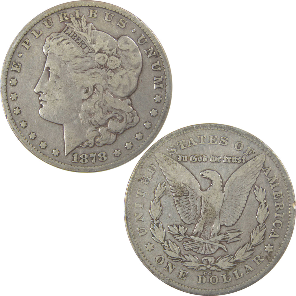 A genuine 1878 CC Morgan Silver Dollar Coin, in F Fine Condition. Contains 90% Silver