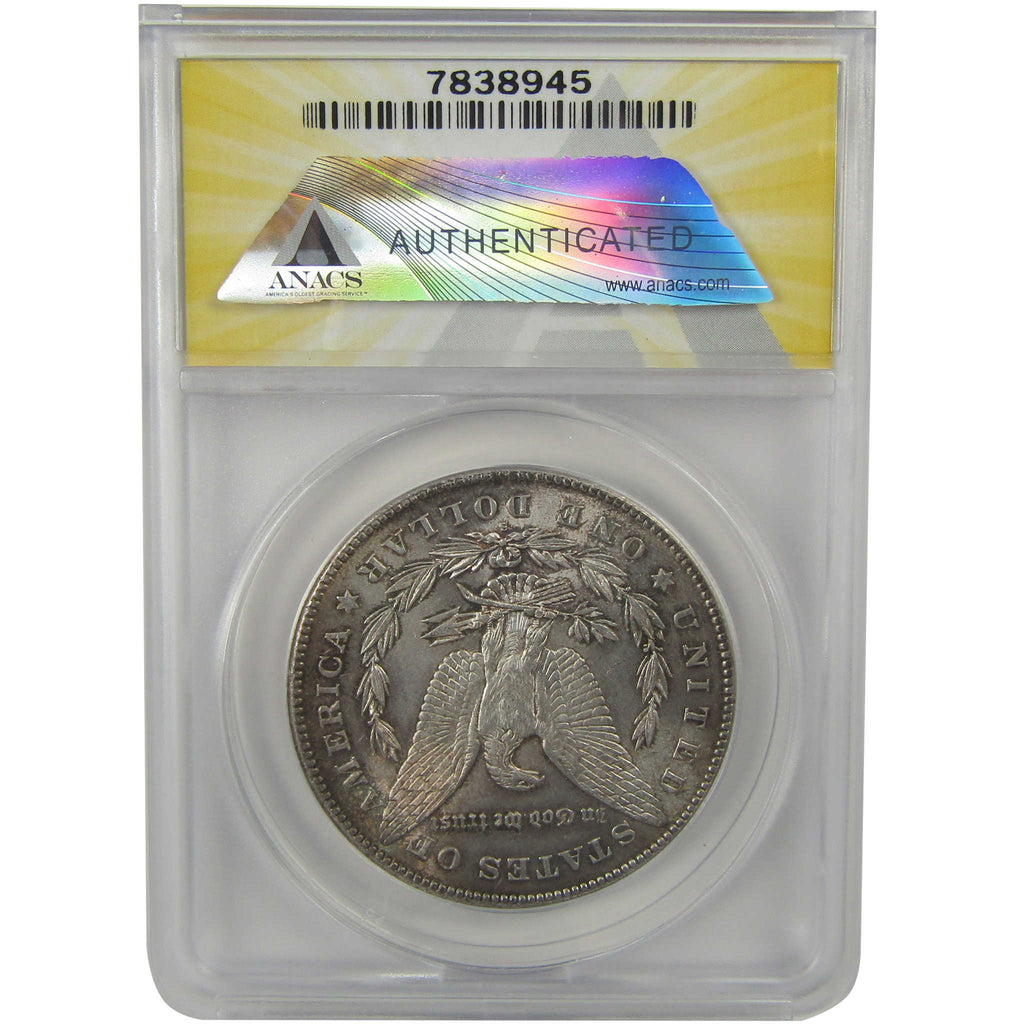 A genuine 1878 S Morgan Silver Dollar Coin, graded and certified MS 60 Details by ANACS. Contains 90% Silver. Cleaned