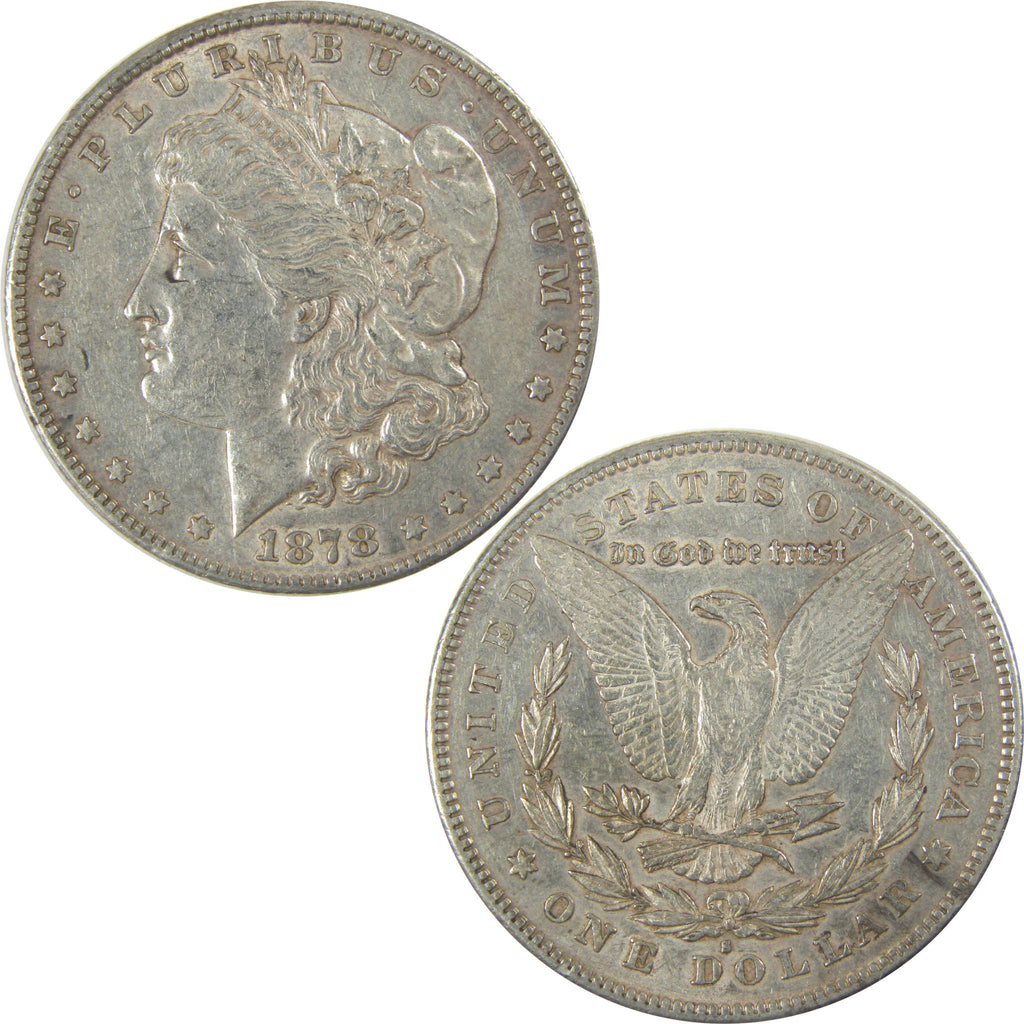 A genuine 1878 S Morgan Silver Dollar Coin, in XF EF Extremely Fine Condition. Contains 90% Silver